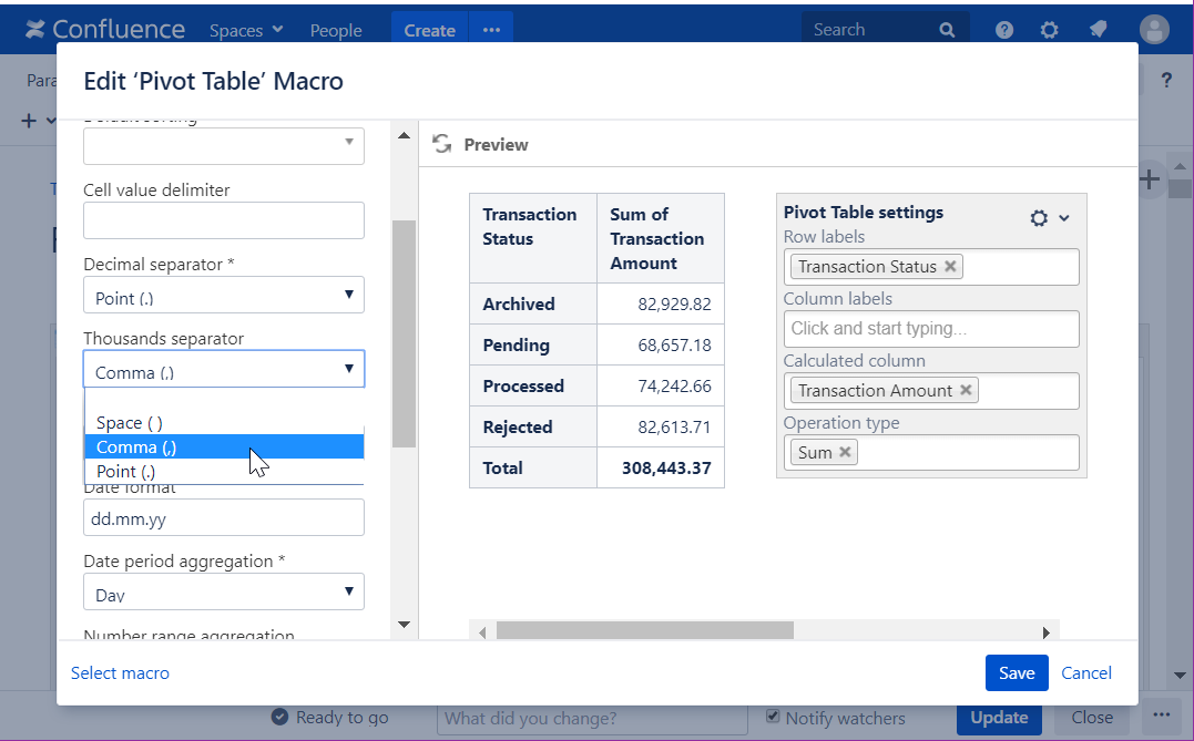 Set the thousands separator
