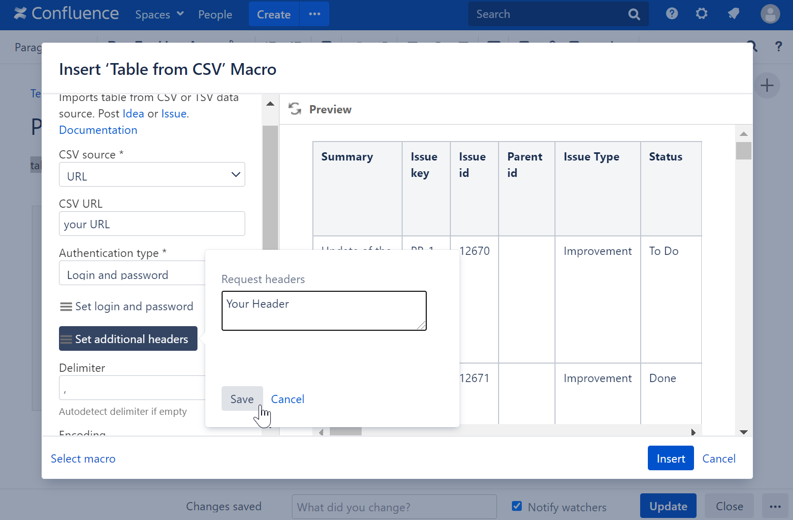 The macro supports outputting data from a URL or an attached file.