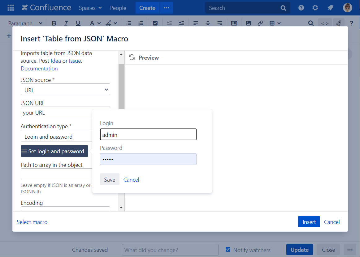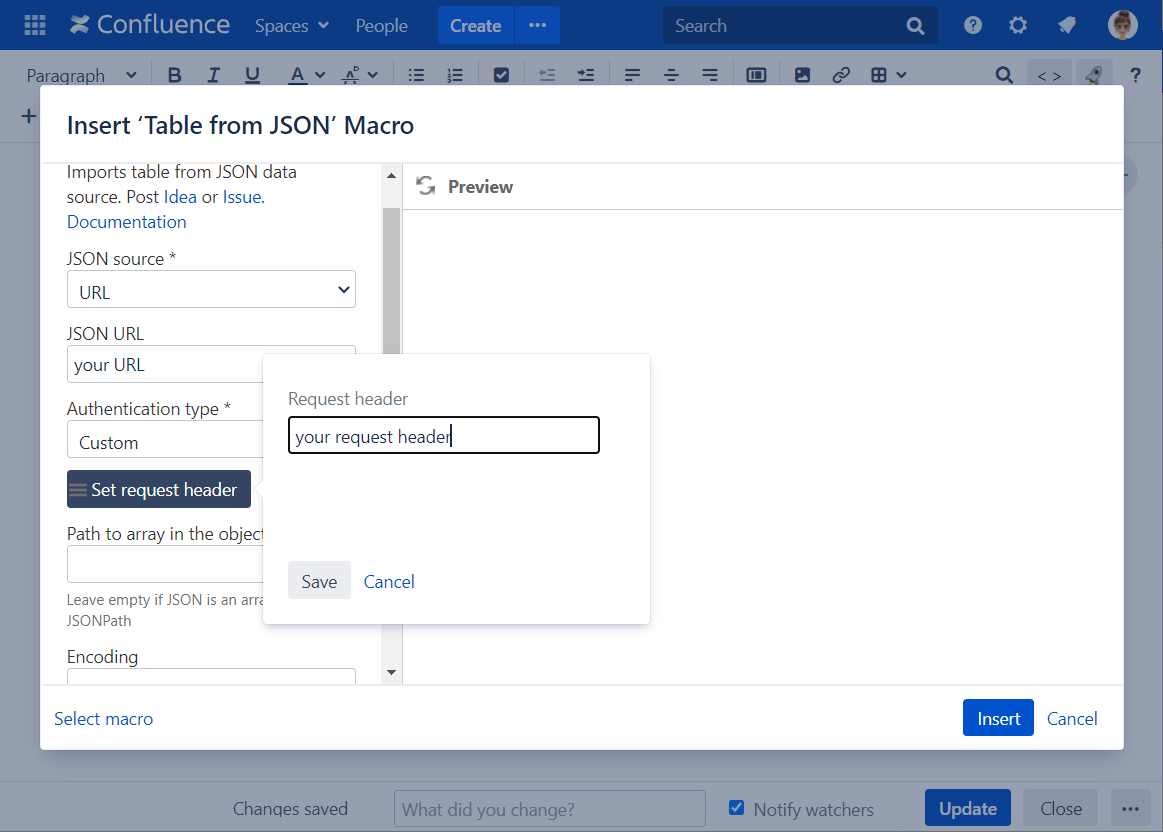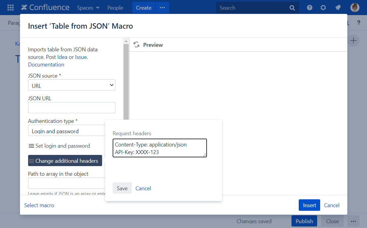 The Table from JSON macro allows you to output a table from JSON data source.