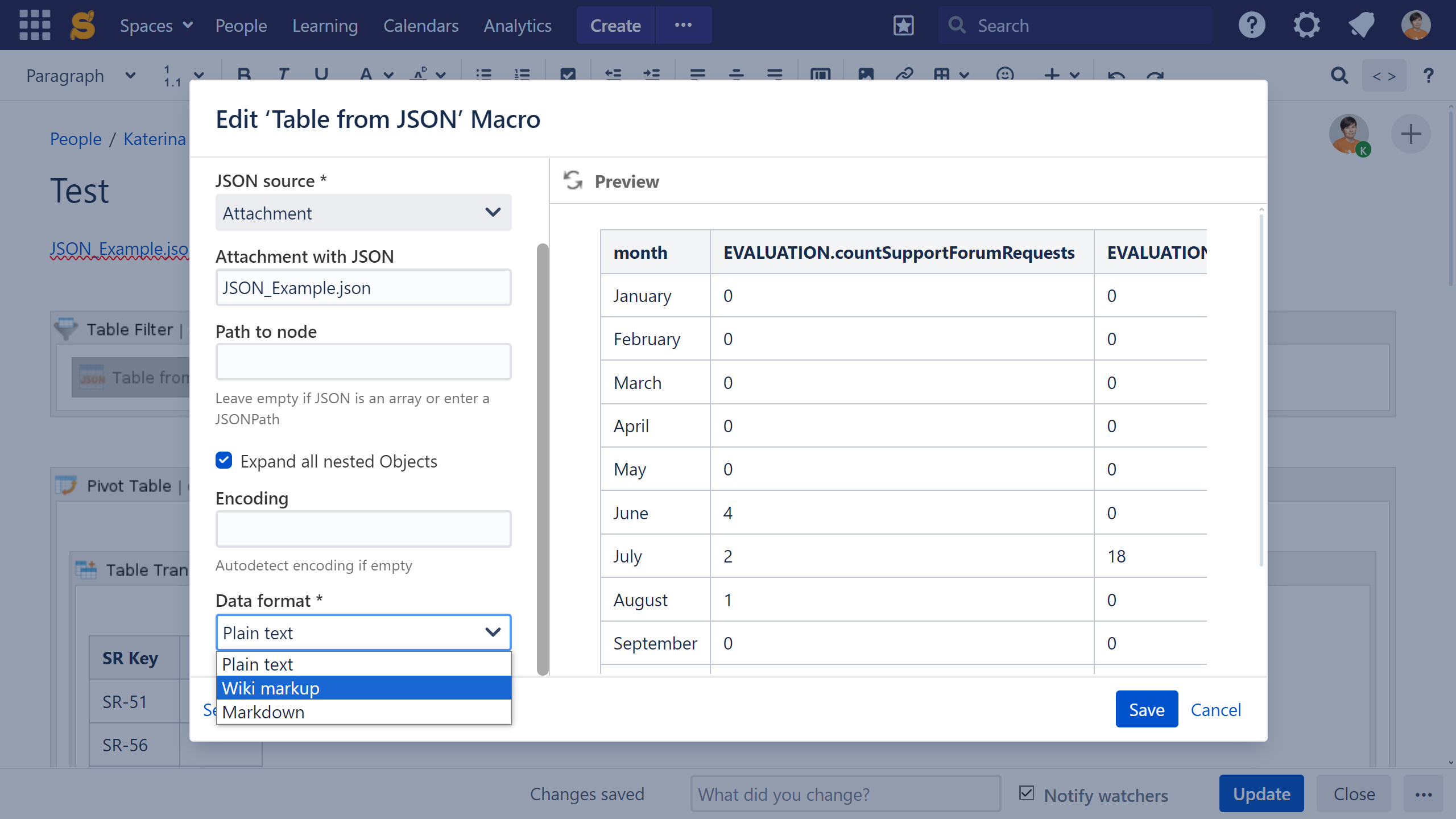 The macro supports outputting data from a URL or an attached file.