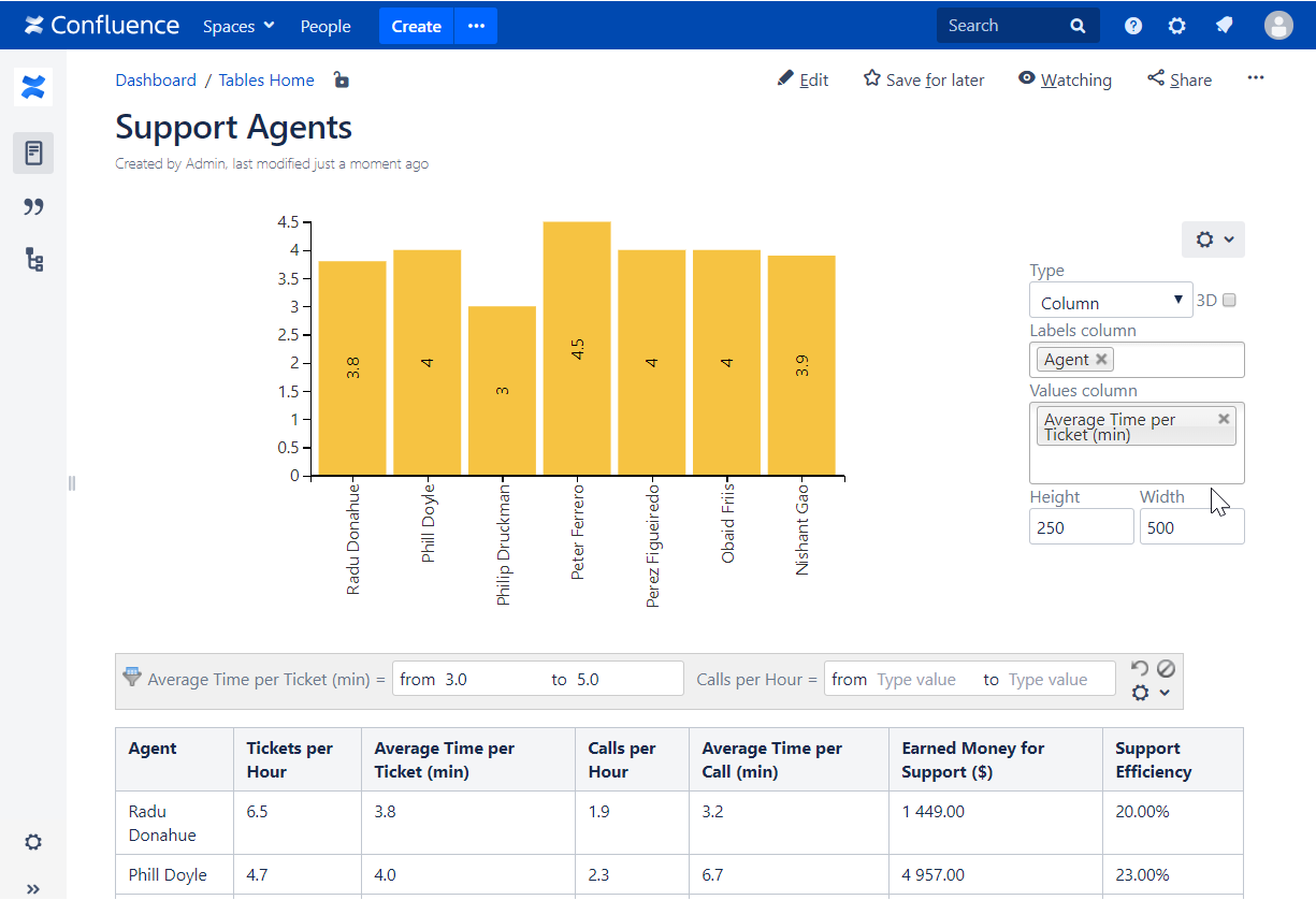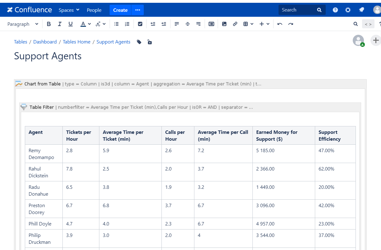 - Place the Table filter macro with the table inside the Chart from Table macro.