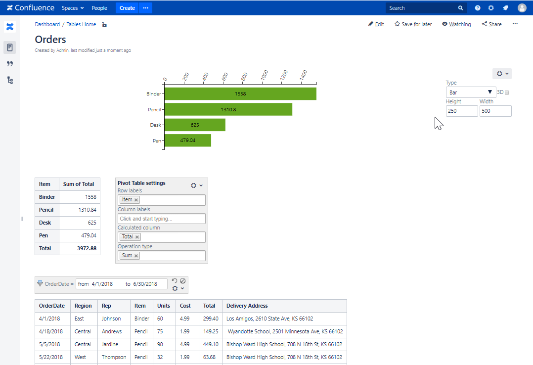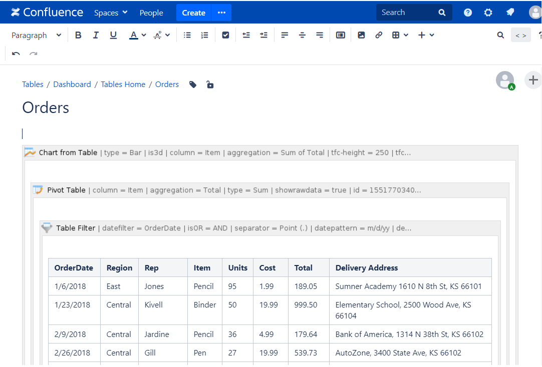 - Place the Pivot Table macro inside the Chart from Table macro.