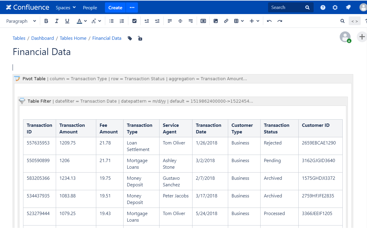 - Insert the Table filter macro and place the table (the macro outputting the table data or the Table Excerpt Include macro) within the macro.