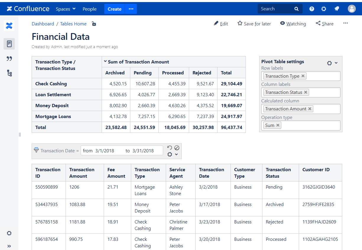 - Change the filtration criteria. Filtration will be automatically applied to the data table and the pivot table will be automatically updated.