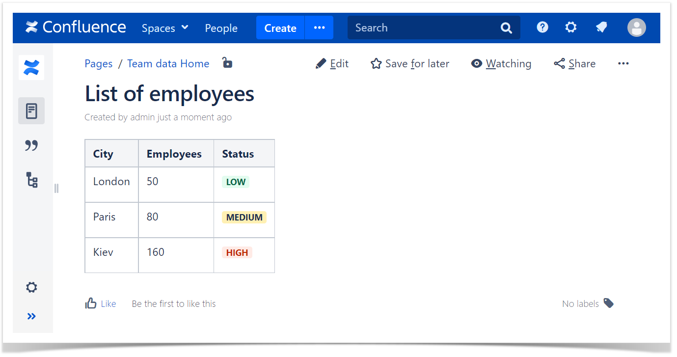 THEN FORMATWIKI("{status:colour=Green|subtle=true|title=Low}")