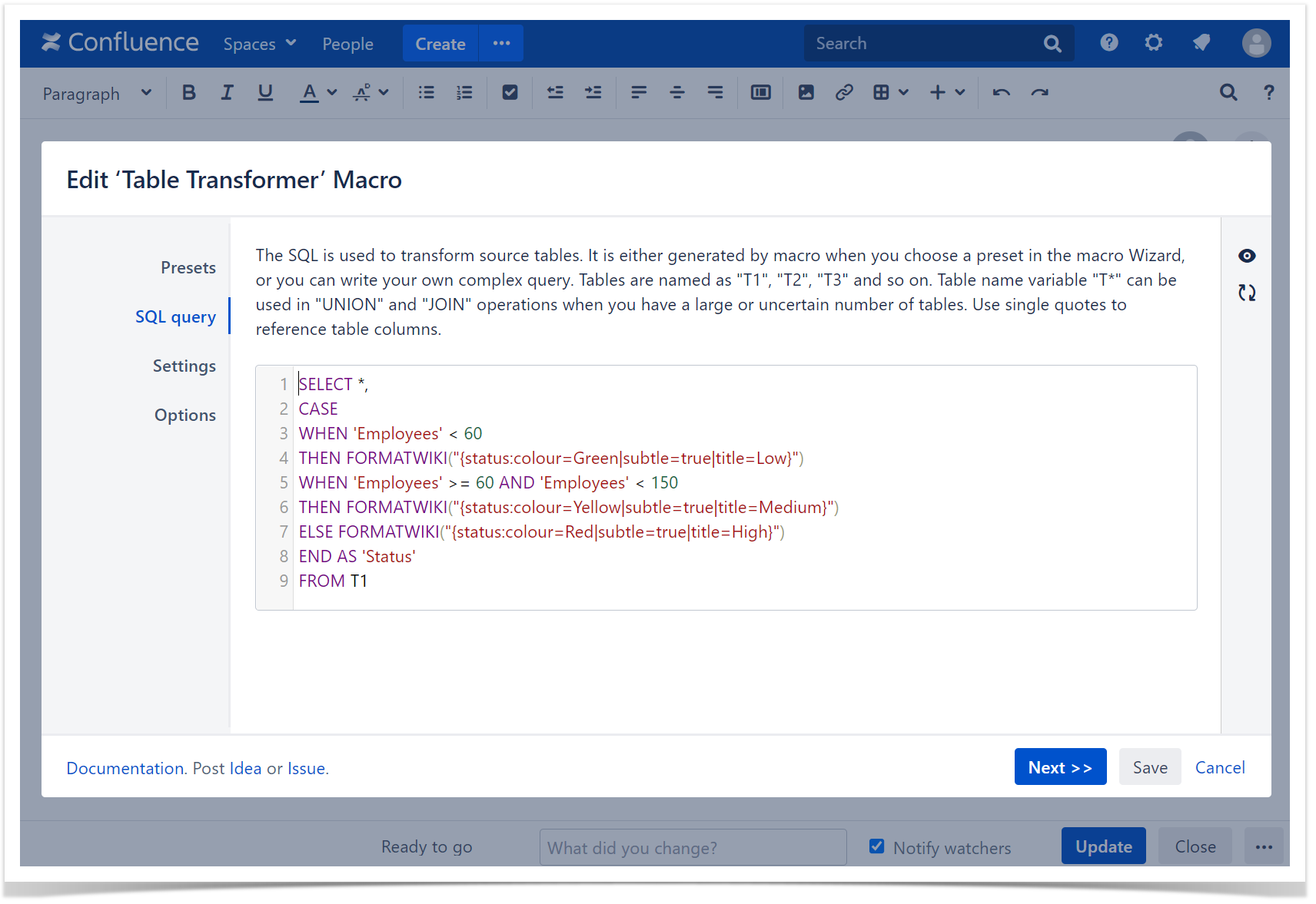 THEN FORMATWIKI("{status:colour=Yellow|subtle=true|title=Medium}")