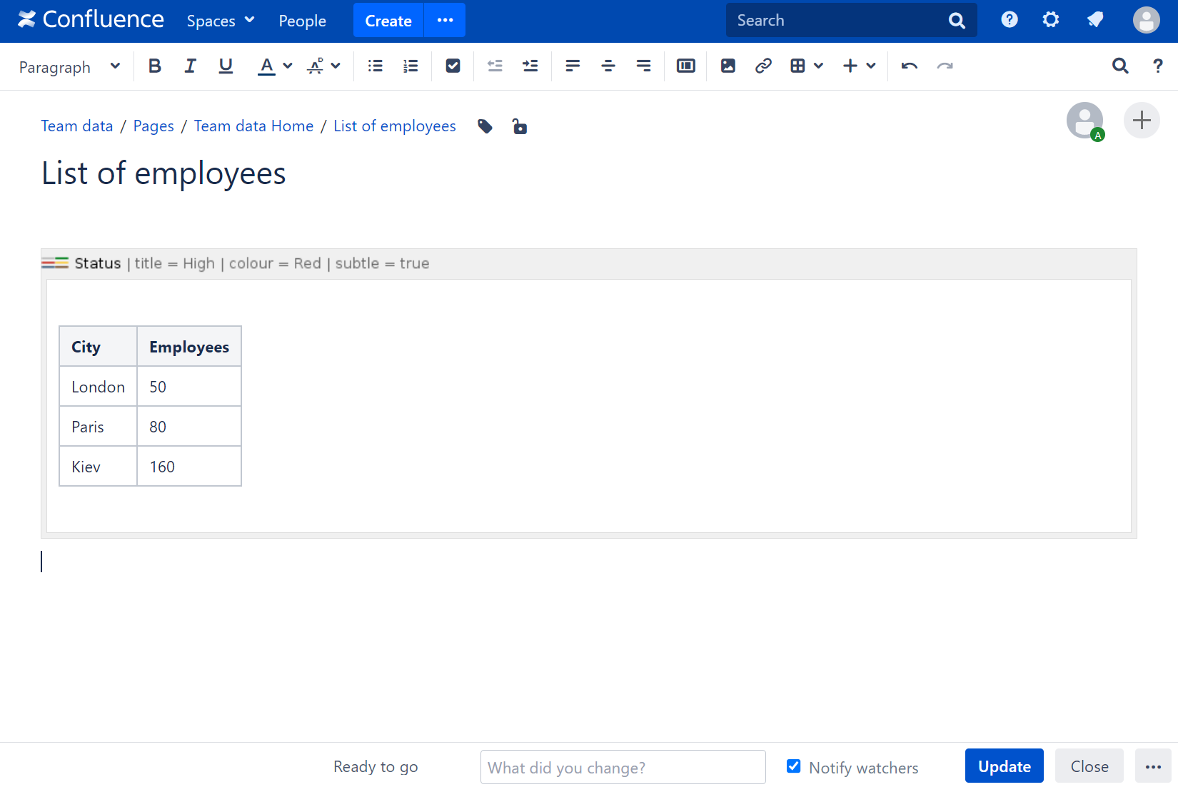 - Insert the Status macro and paste the table or the macros outputting tables within the macro body.