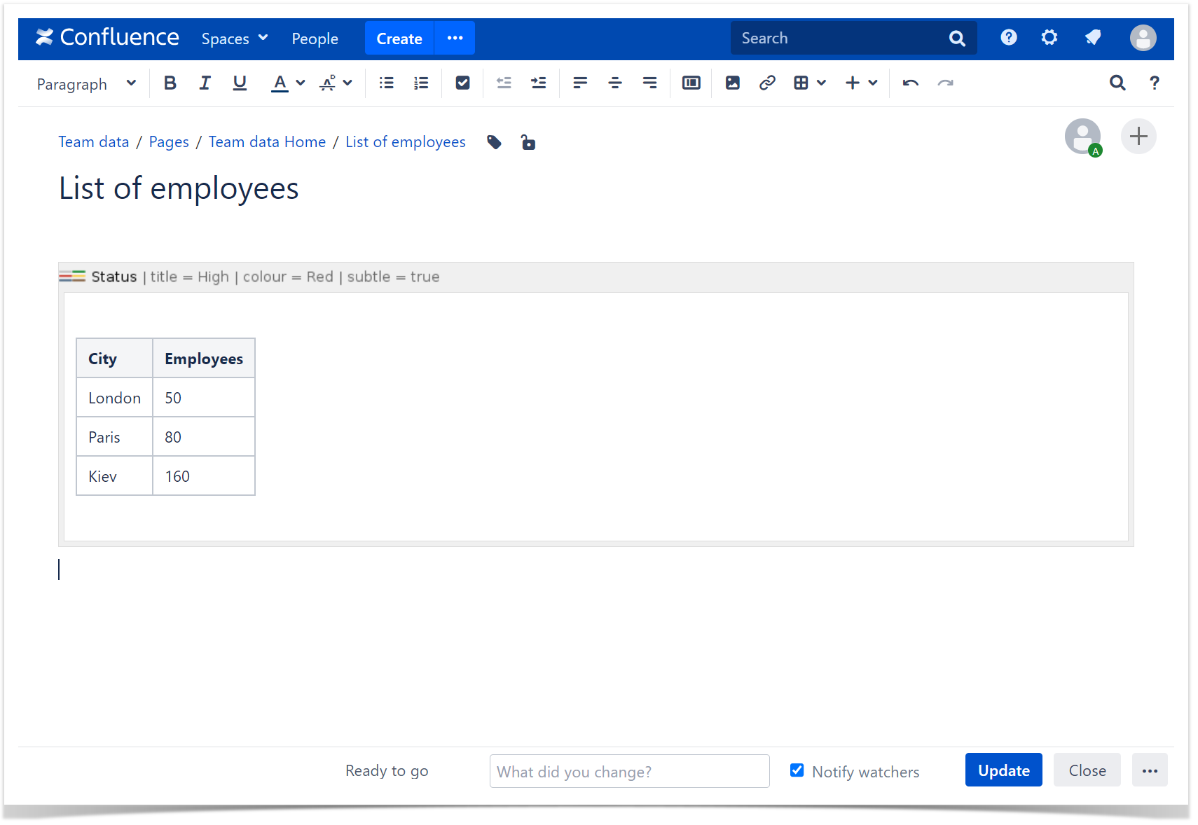 2. Insert the Status macro and paste the table or the macros outputting tables within the macro body.