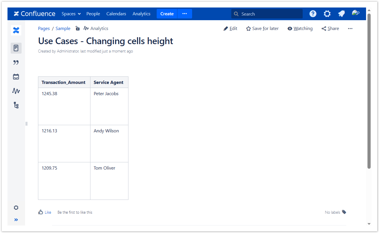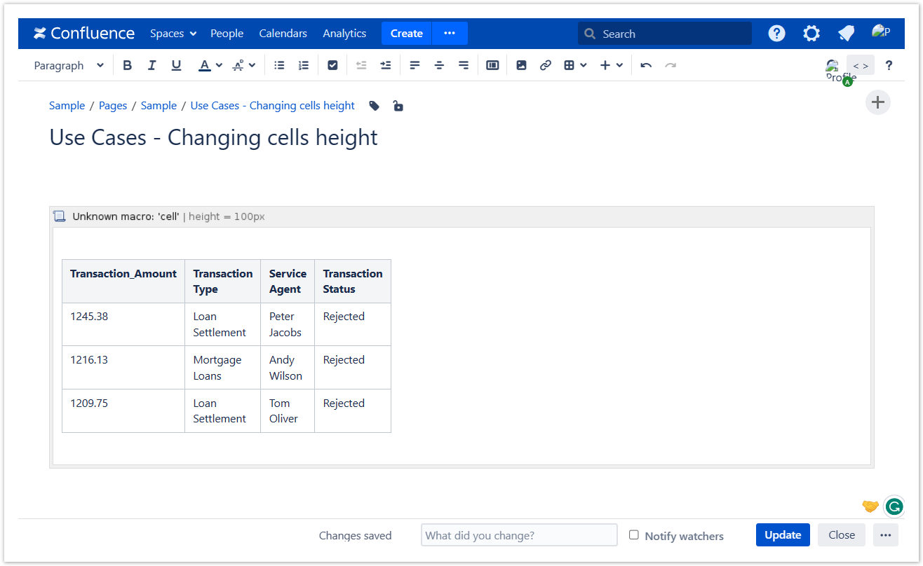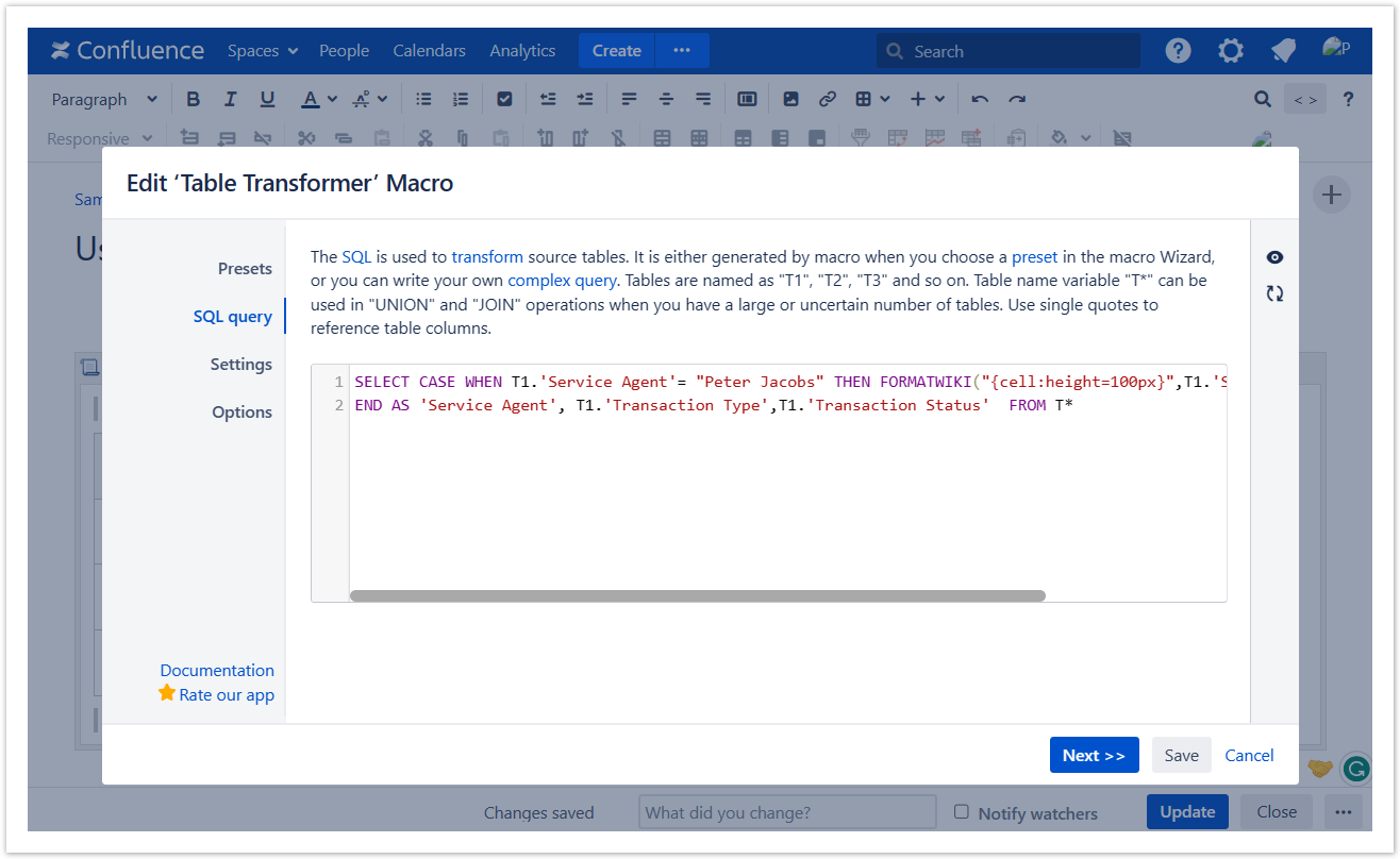 SELECT CASE WHEN T1.'Service Agent'= "Peter Jacobs" THEN FORMATWIKI("{cell:height=100px}",T1.'Service Agent',"{cell}")