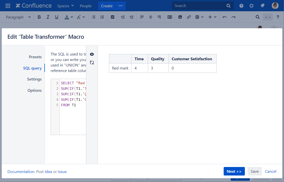 Insert the Table Transformer macro and paste the table or the macros outputting tables within the macro body.