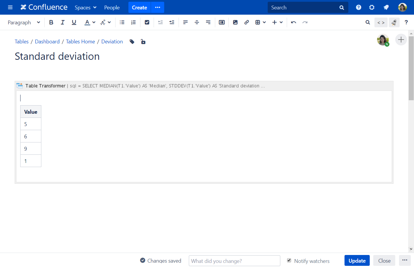 - Insert the Table Transformer macro and paste the table within the macro body.