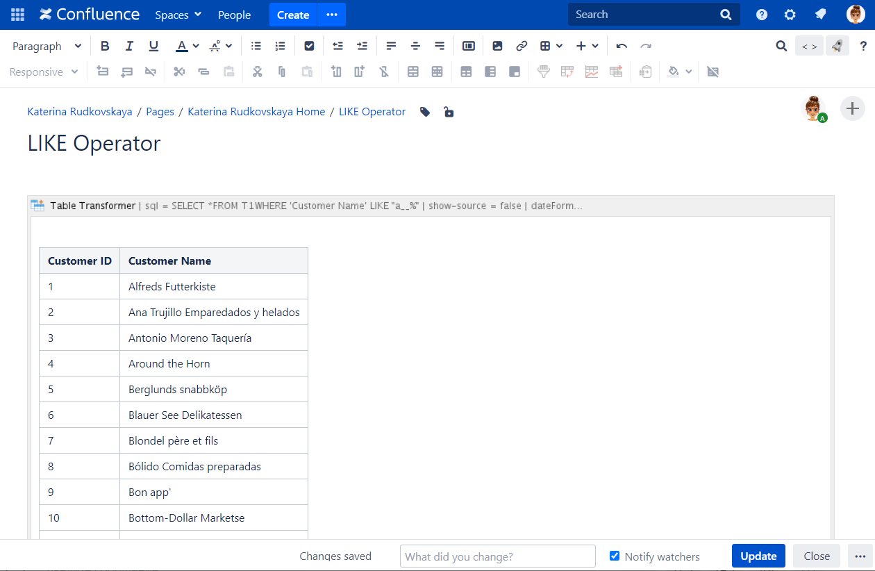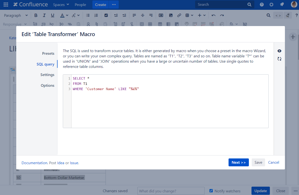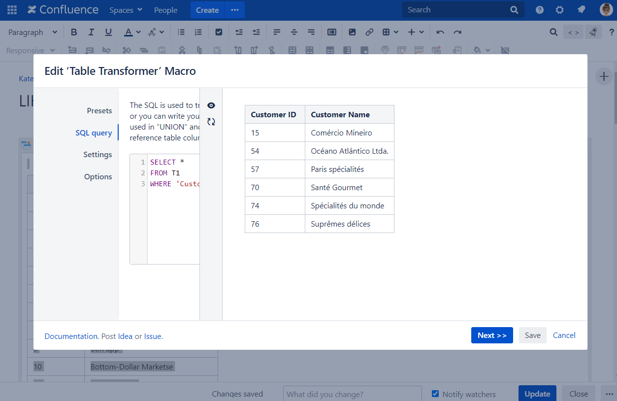 - Insert the Table Transformer macro and paste the table within the macro body.