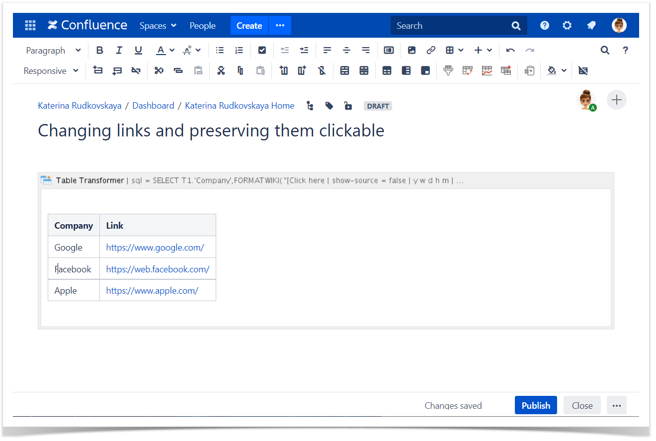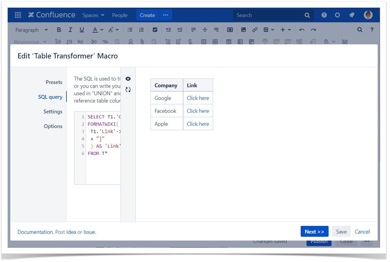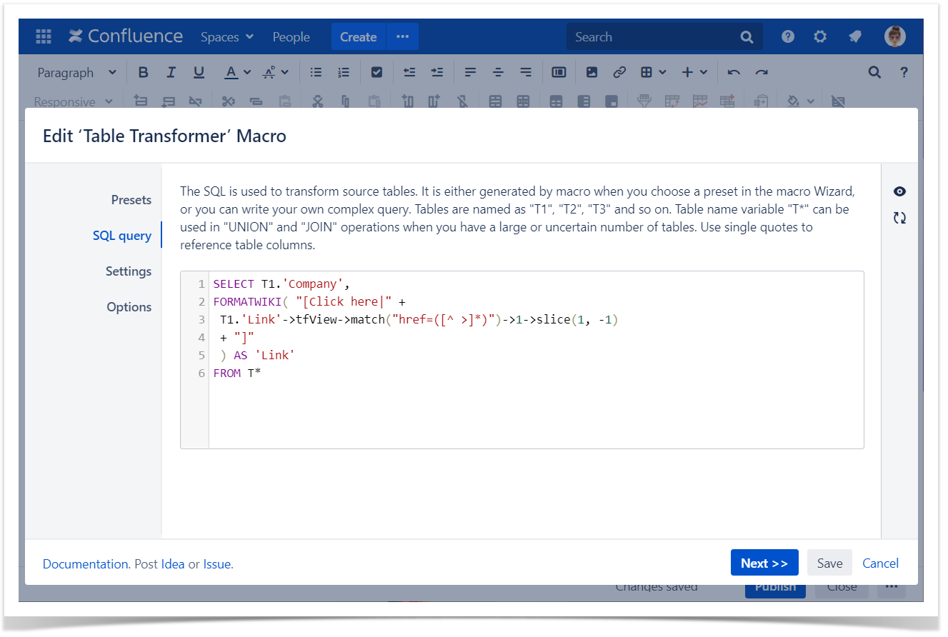 2. Insert the Table Transformer macro and paste the table or the macros outputting tables within the macro body.