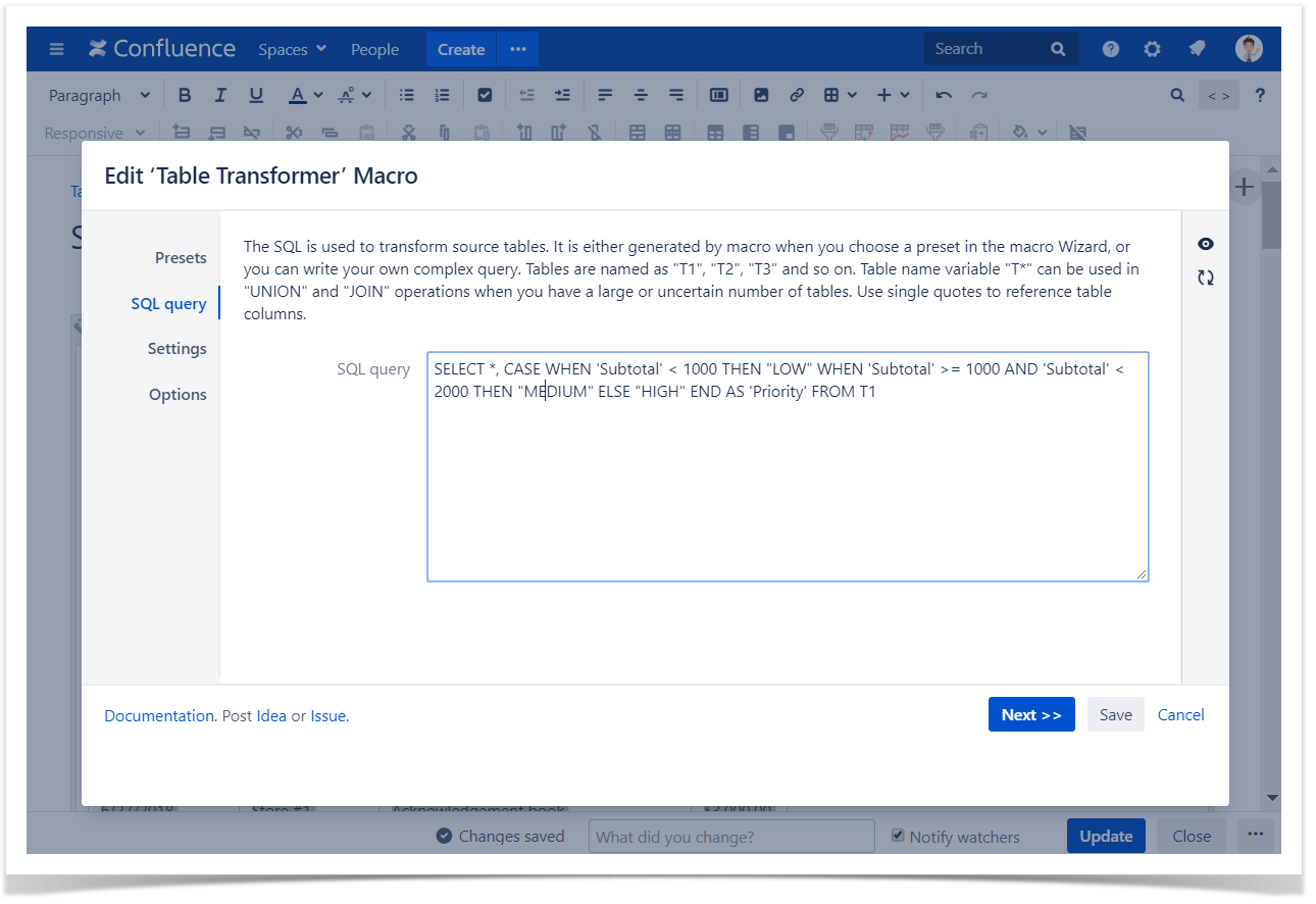 2. Insert the Table Transformer macro and paste the table or the macros outputting tables within the macro body.
