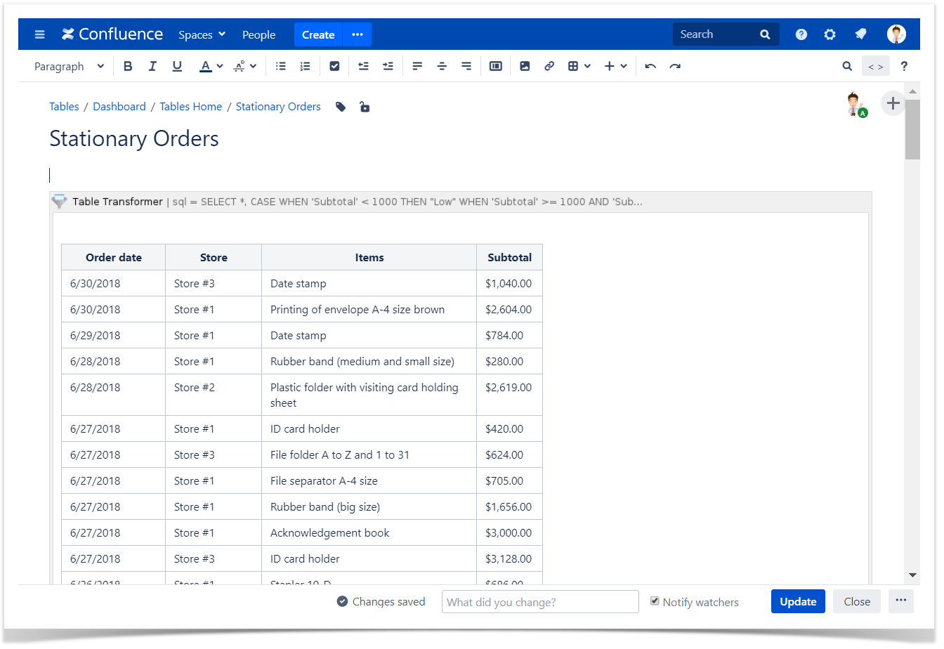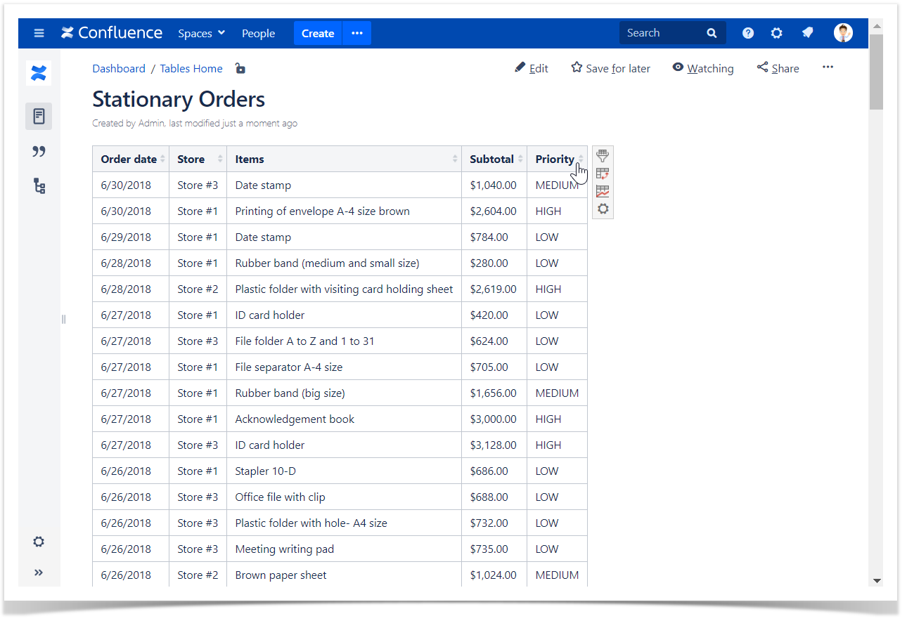 You have a table with the stationary orders. You need to output a new column in the table with the order priority according to the total sum of money: less than $1000 is Low, from $1000 to $2000 is Medium, and more than $2000 is High.