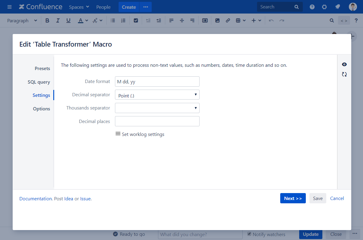 - Insert the Table Transformer macro and paste the tables or the macros outputting tables within the macro body.