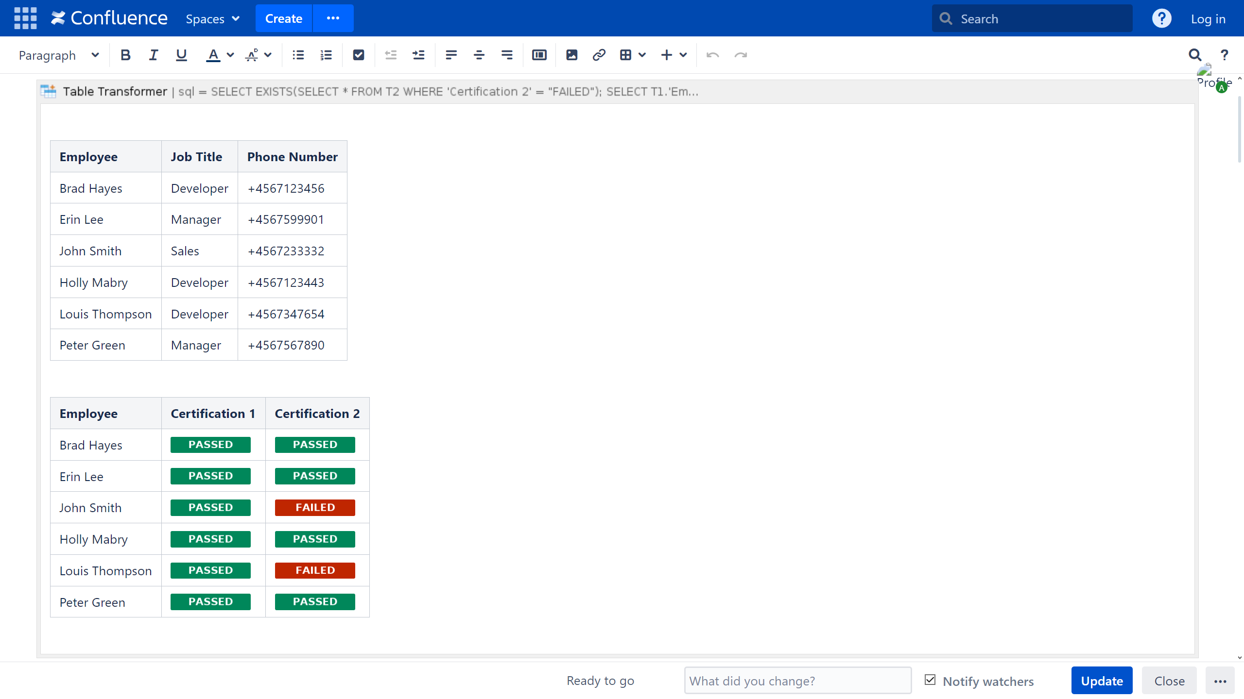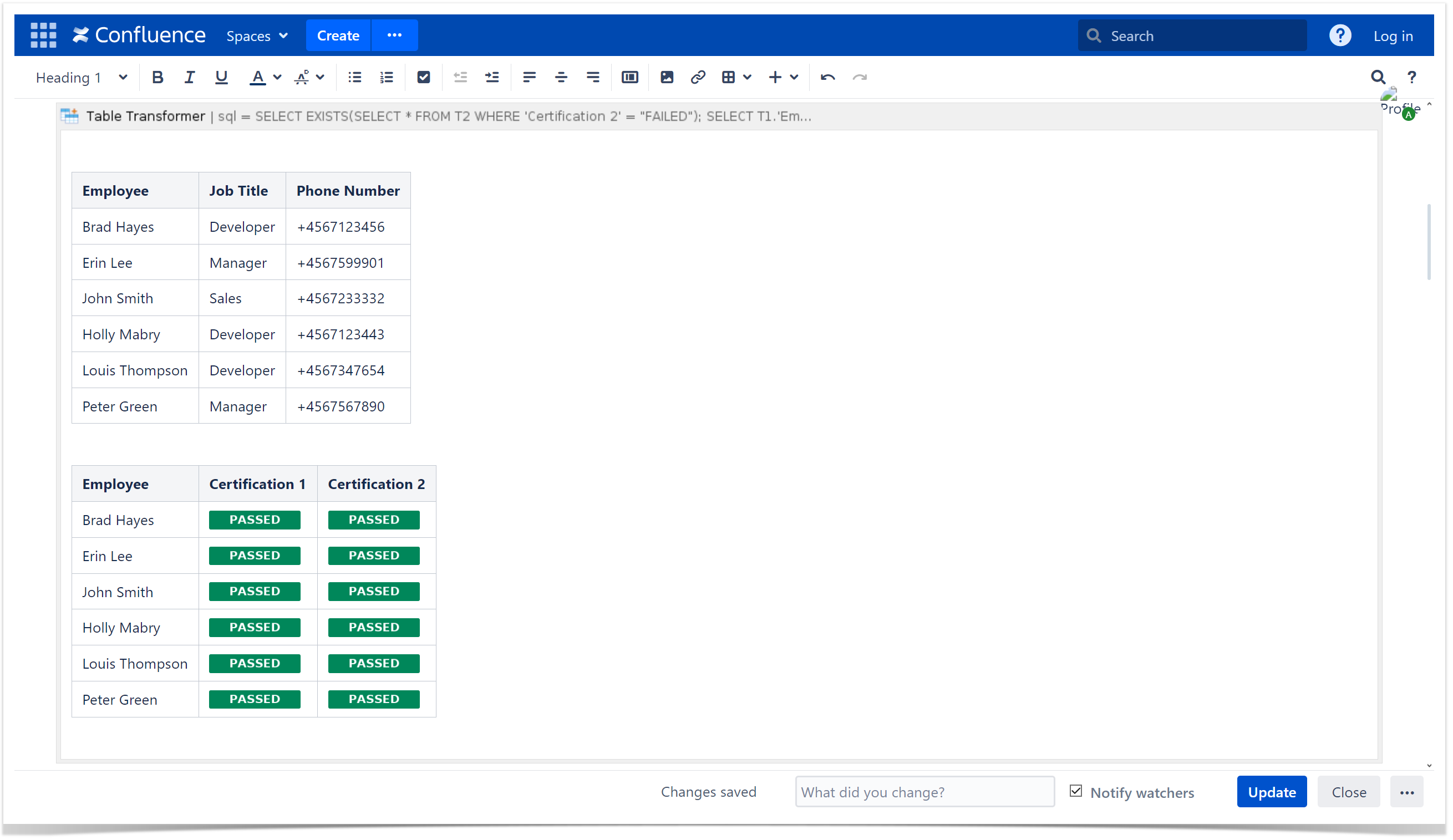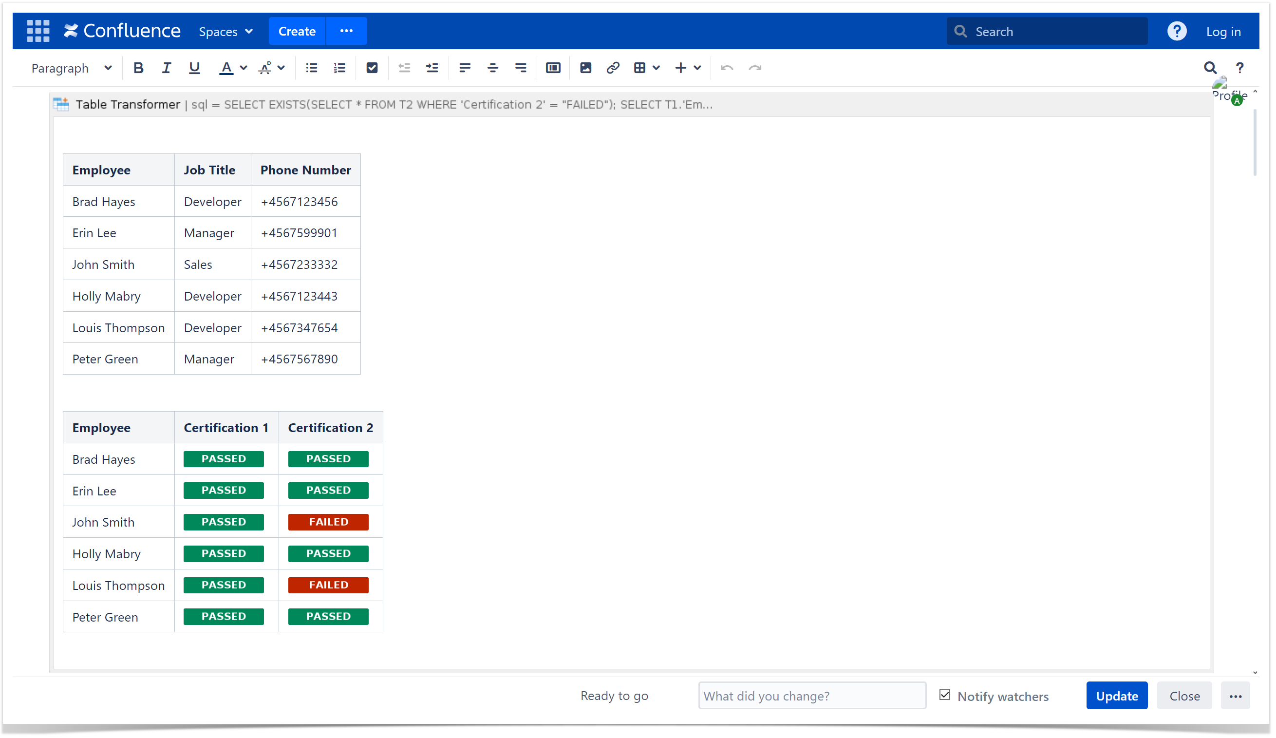 SELECT T1.'Employee', T1.'Job Title', T1.'Phone Number', T2.'Certification 2'