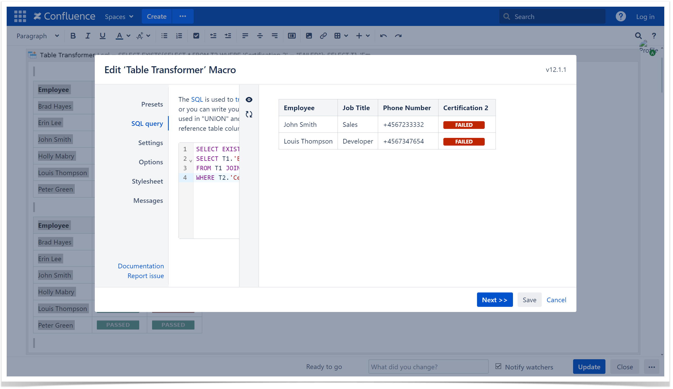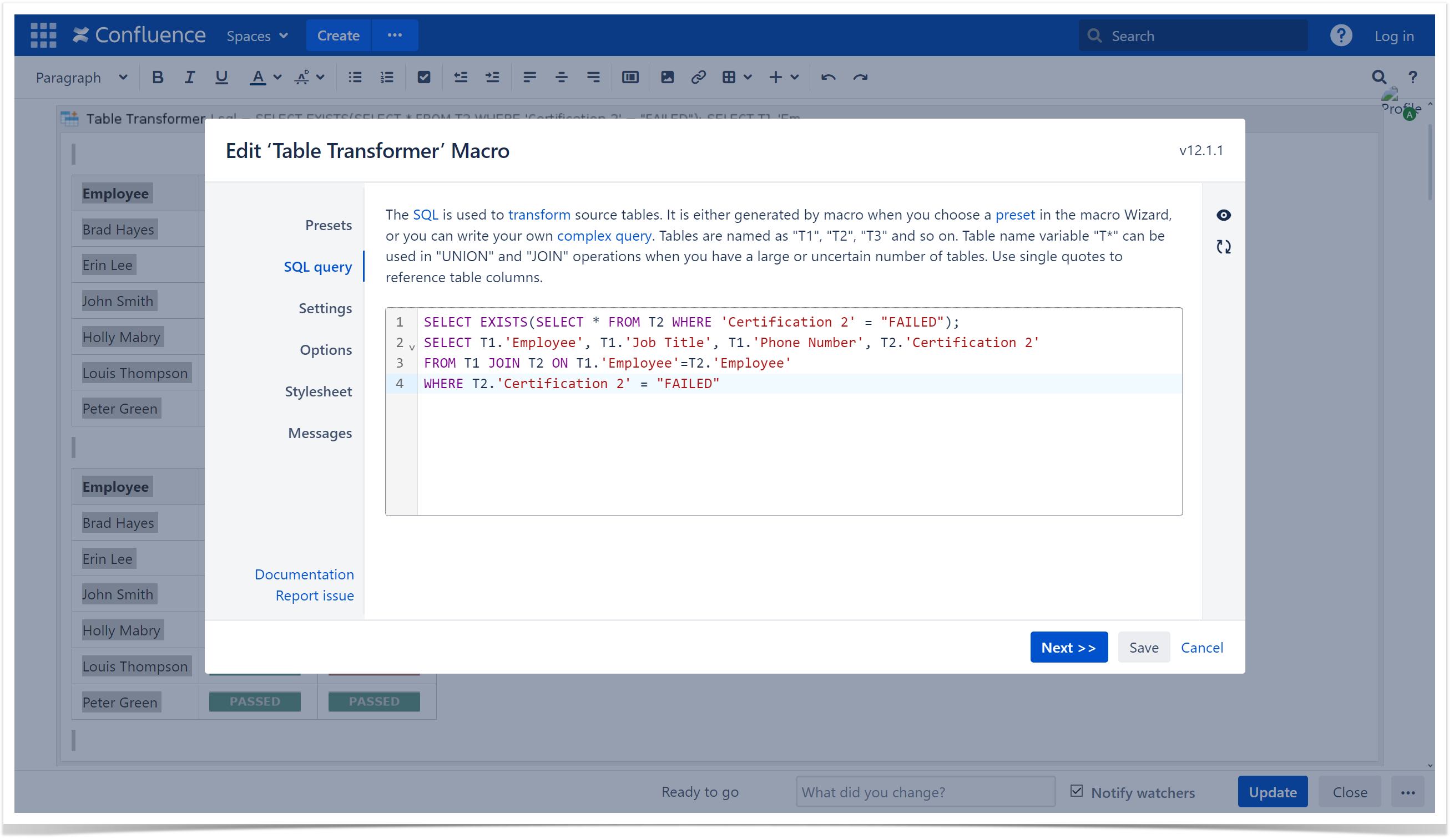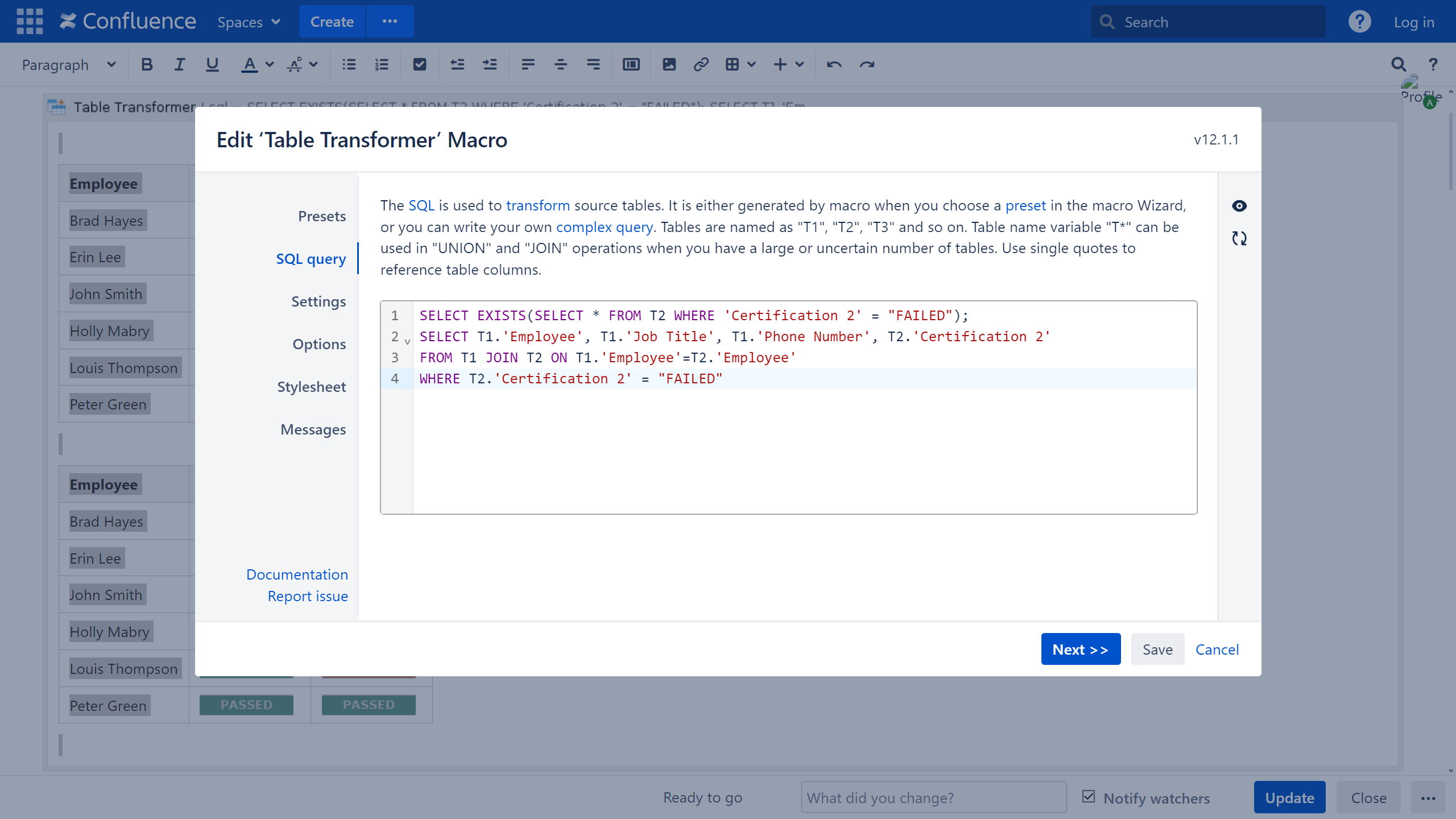 2. Insert the Table Transformer macro and paste the tables or the macros outputting tables within the macro body.