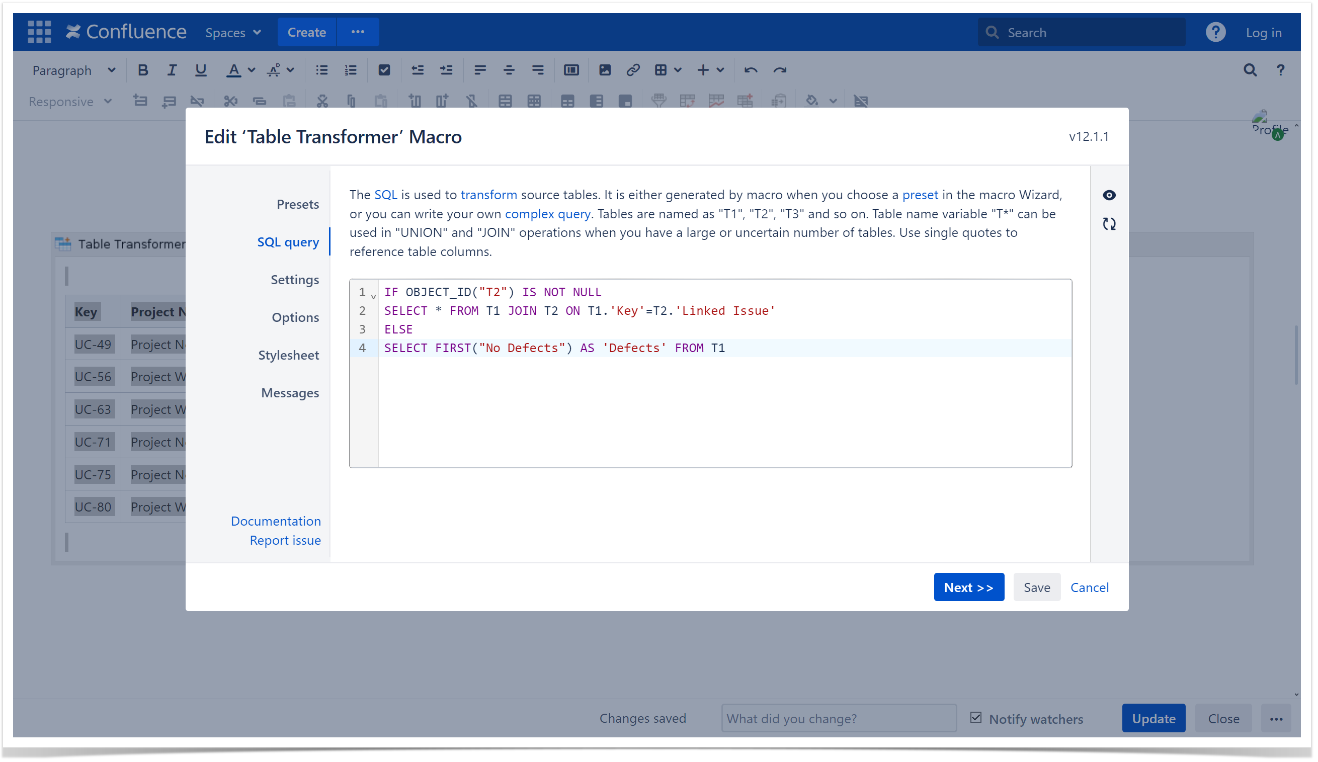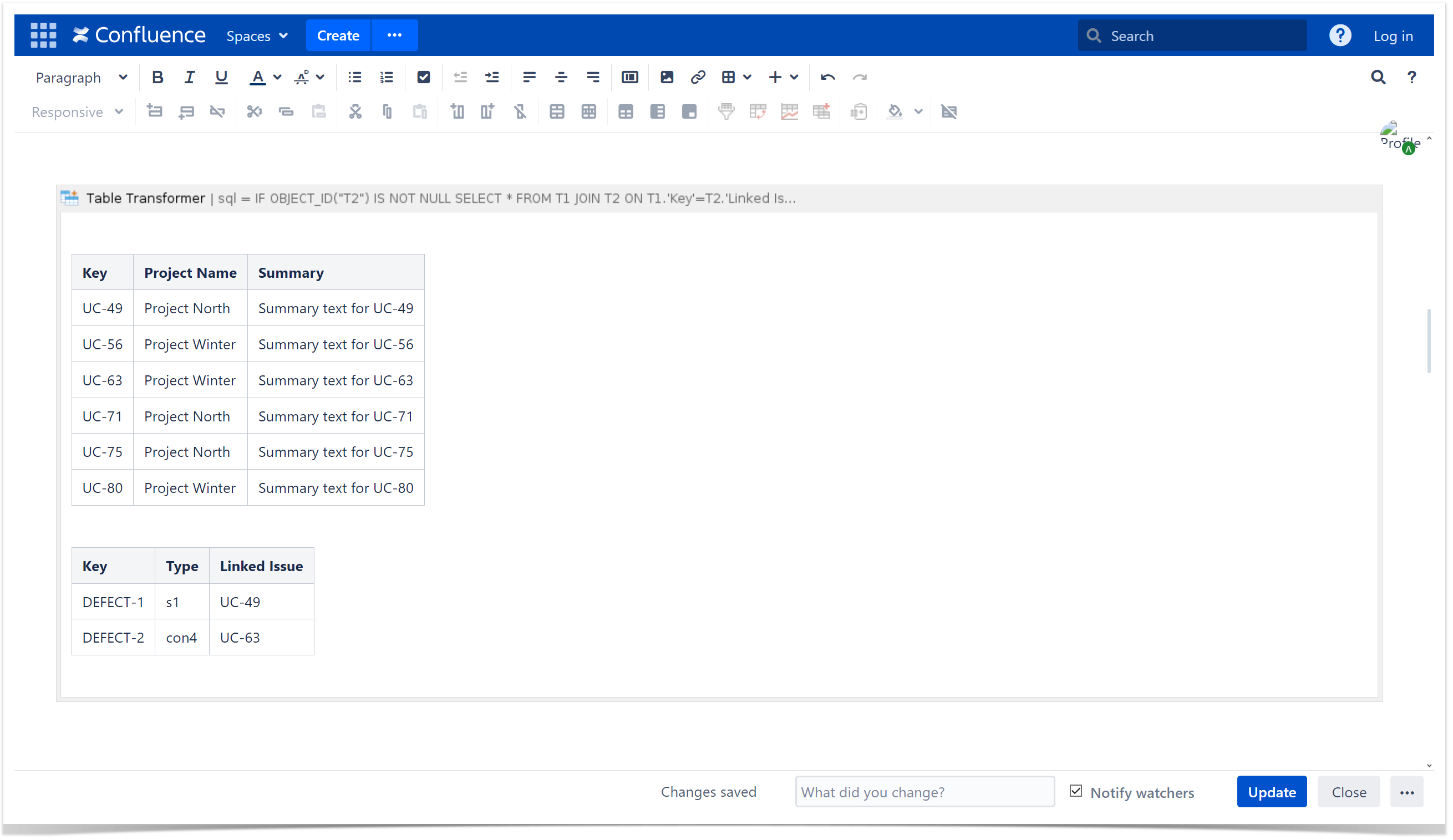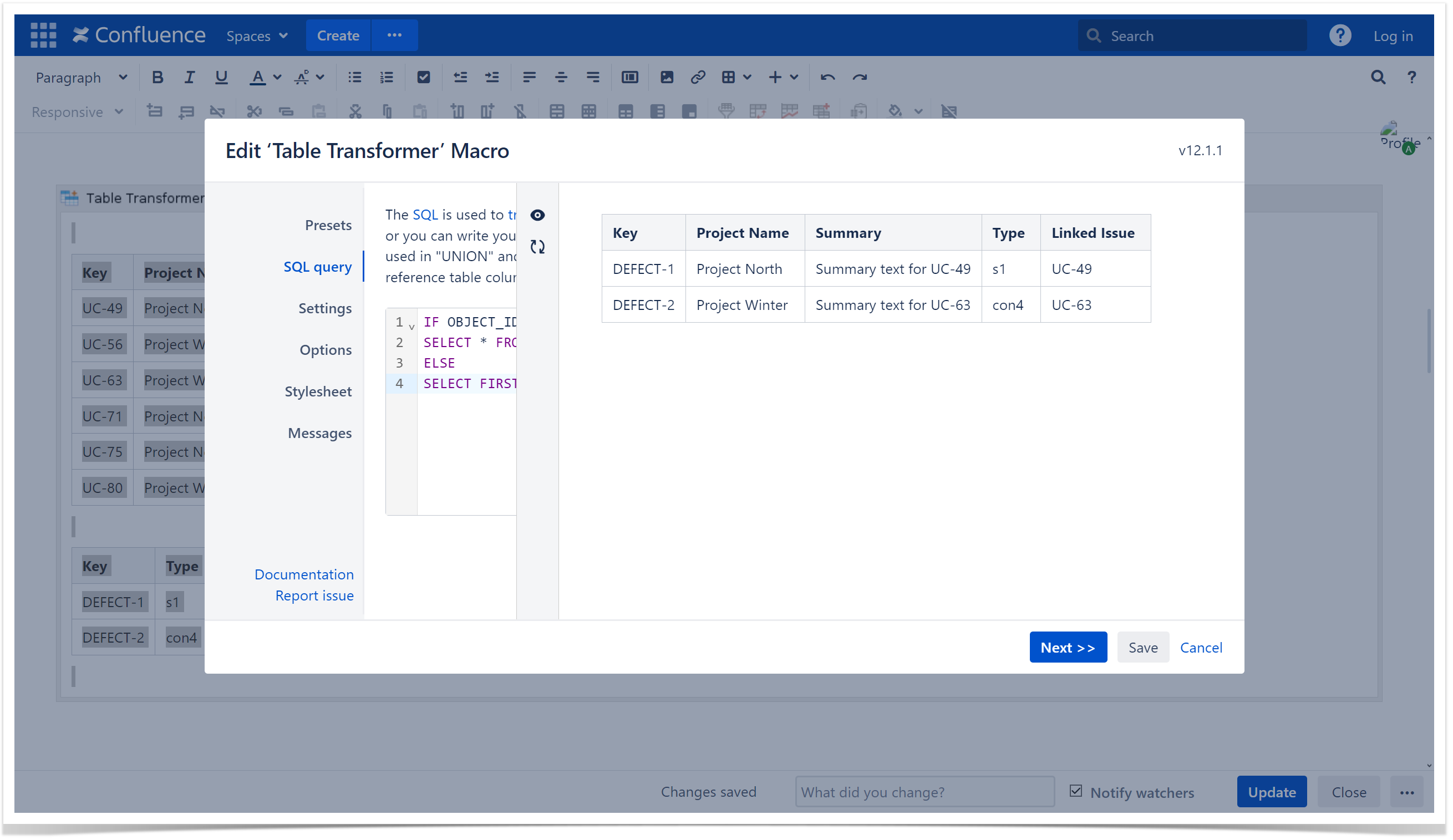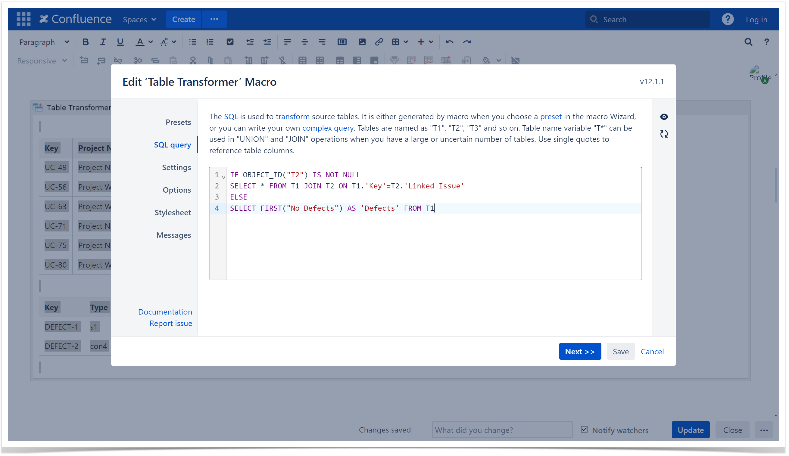 - Insert the Table Transformer macro and paste the tables or the macros outputting tables within the macro body.
