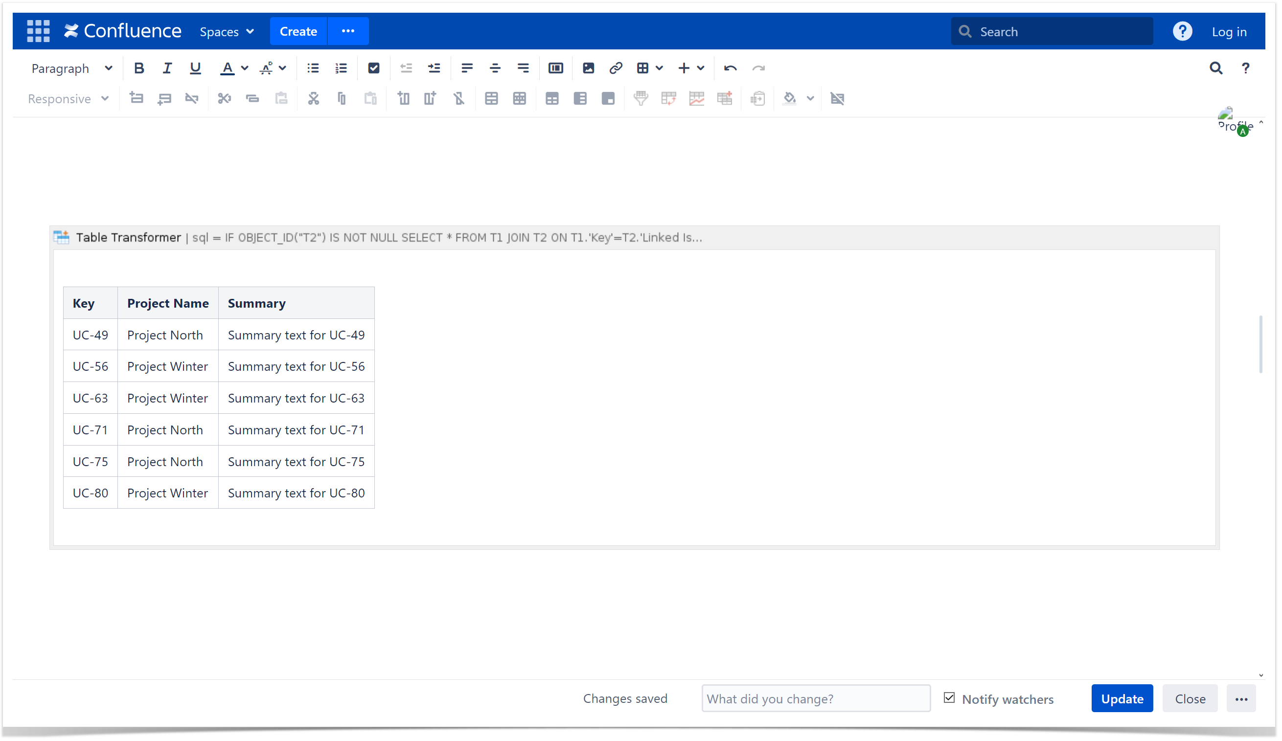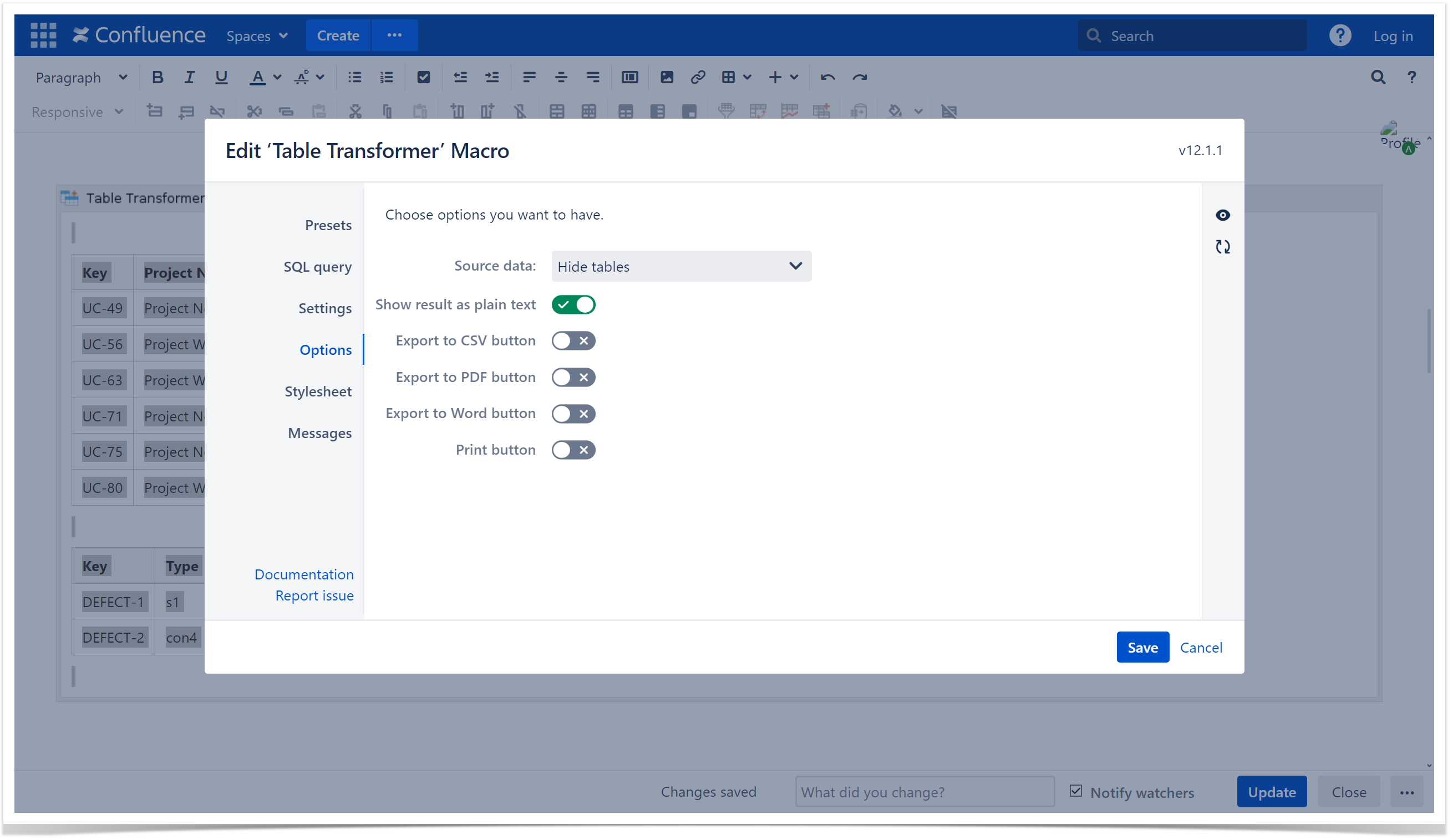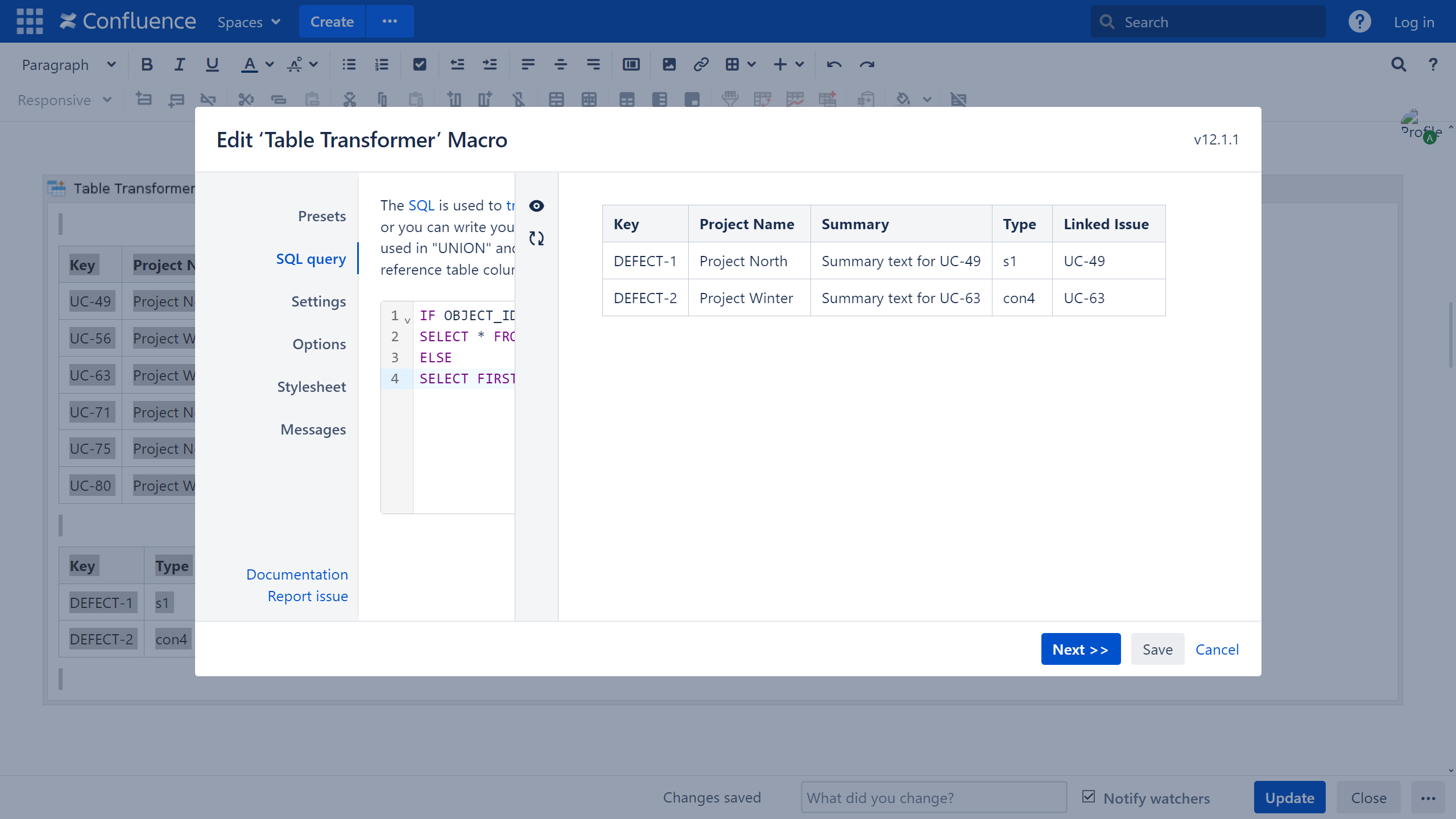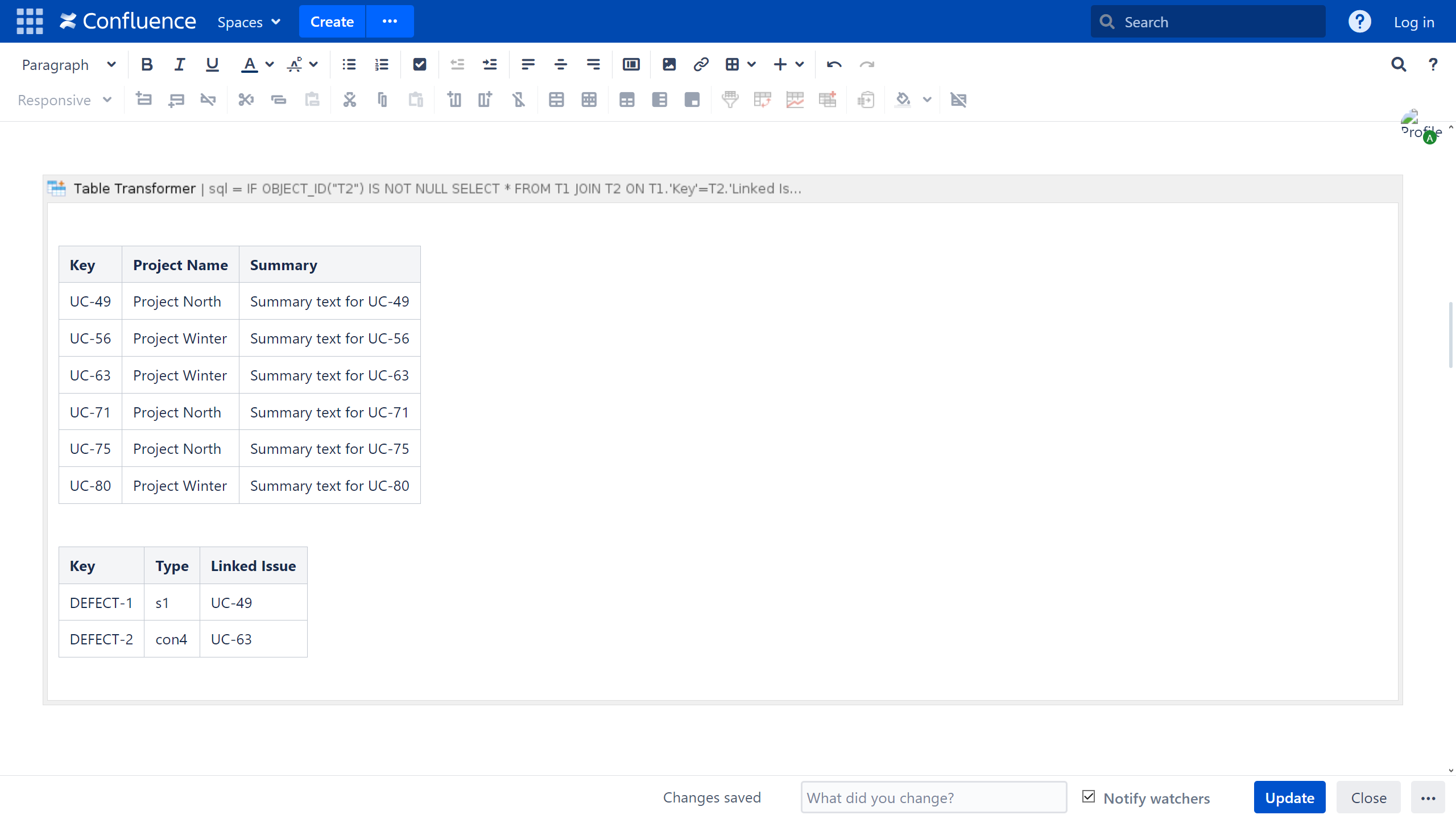 - Insert the Table Transformer macro and paste the tables or the macros outputting tables within the macro body.