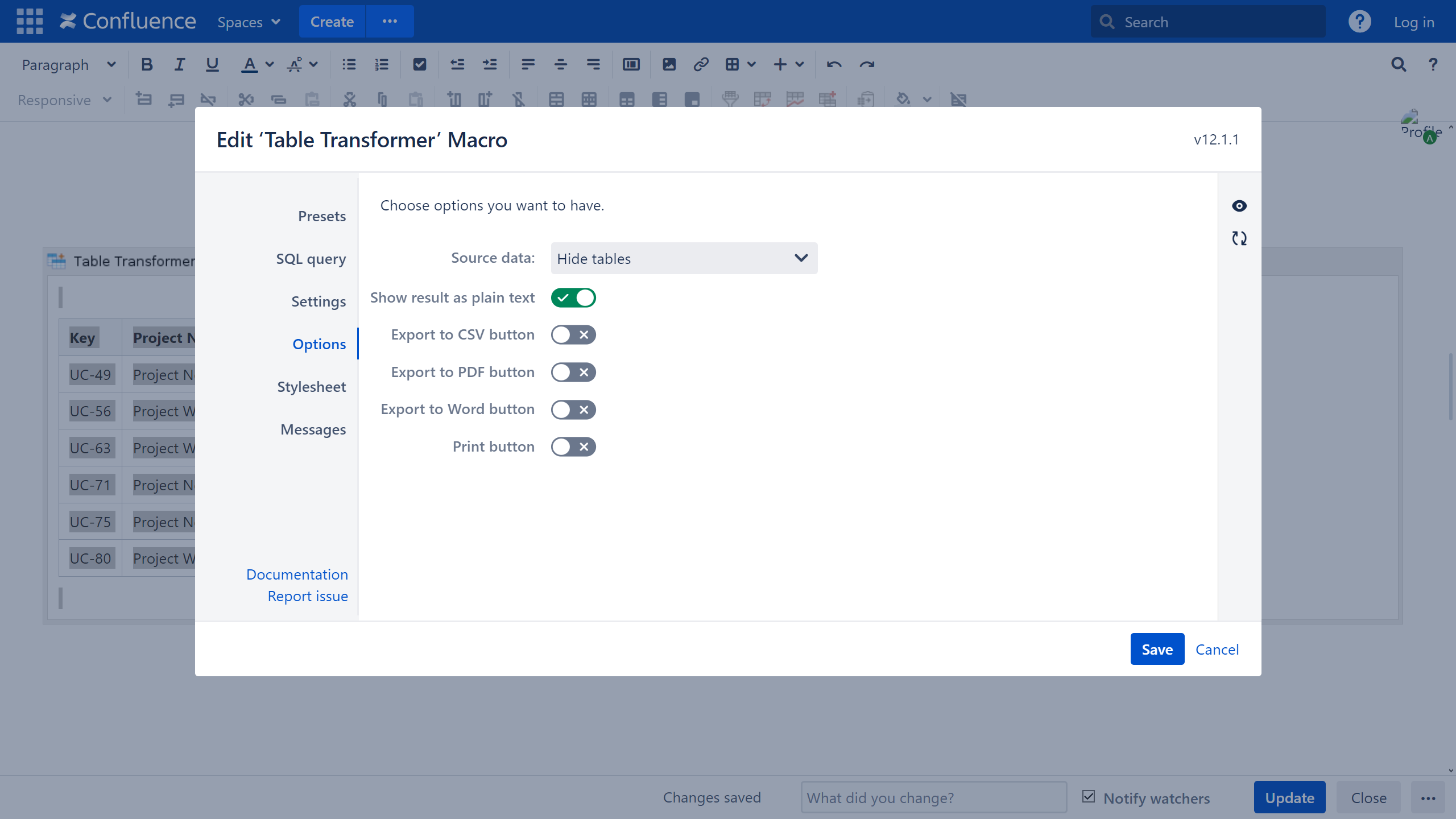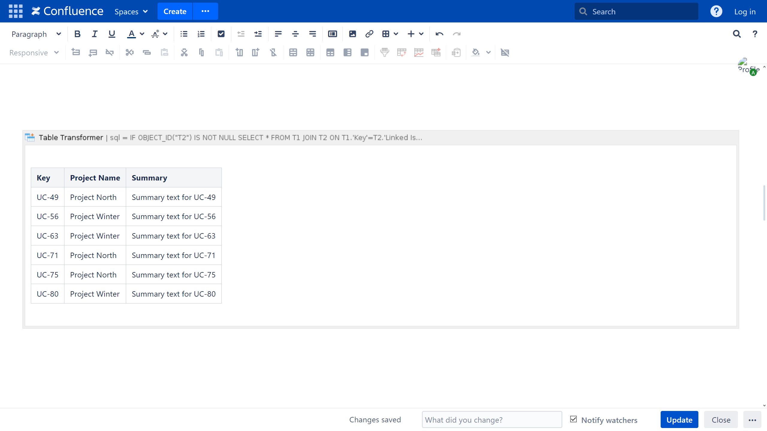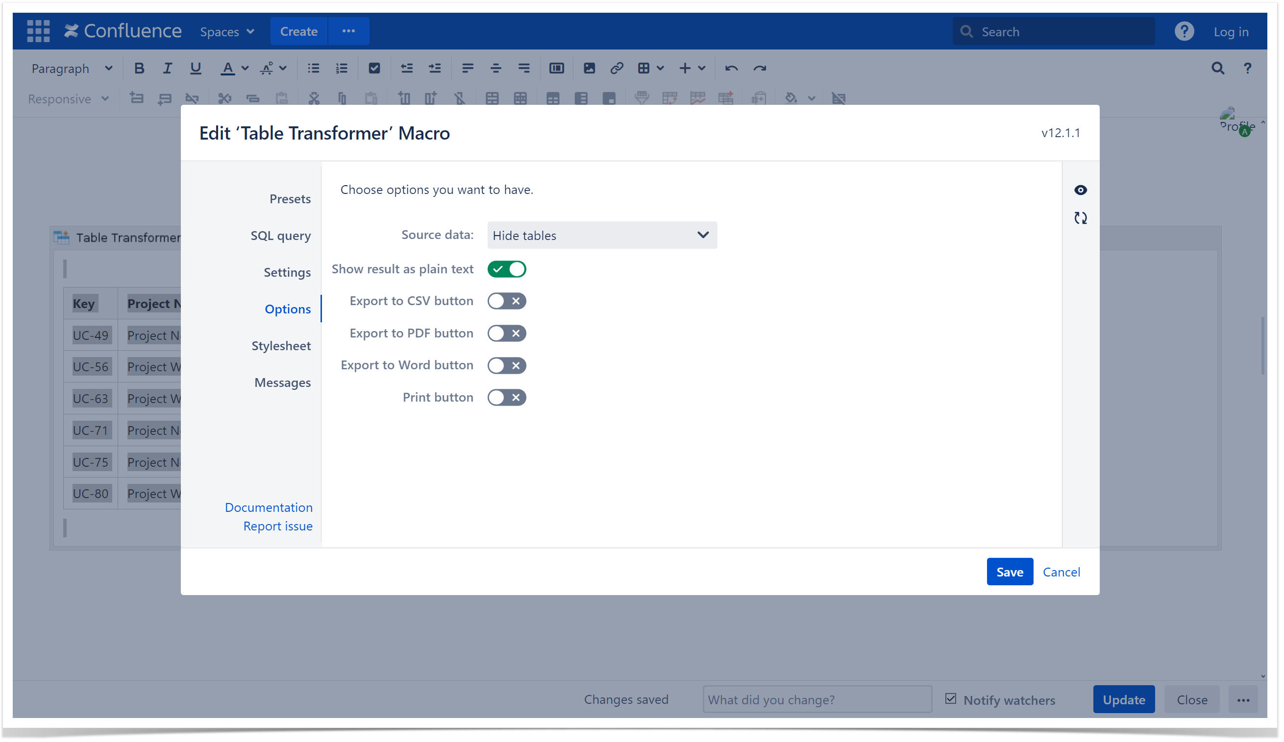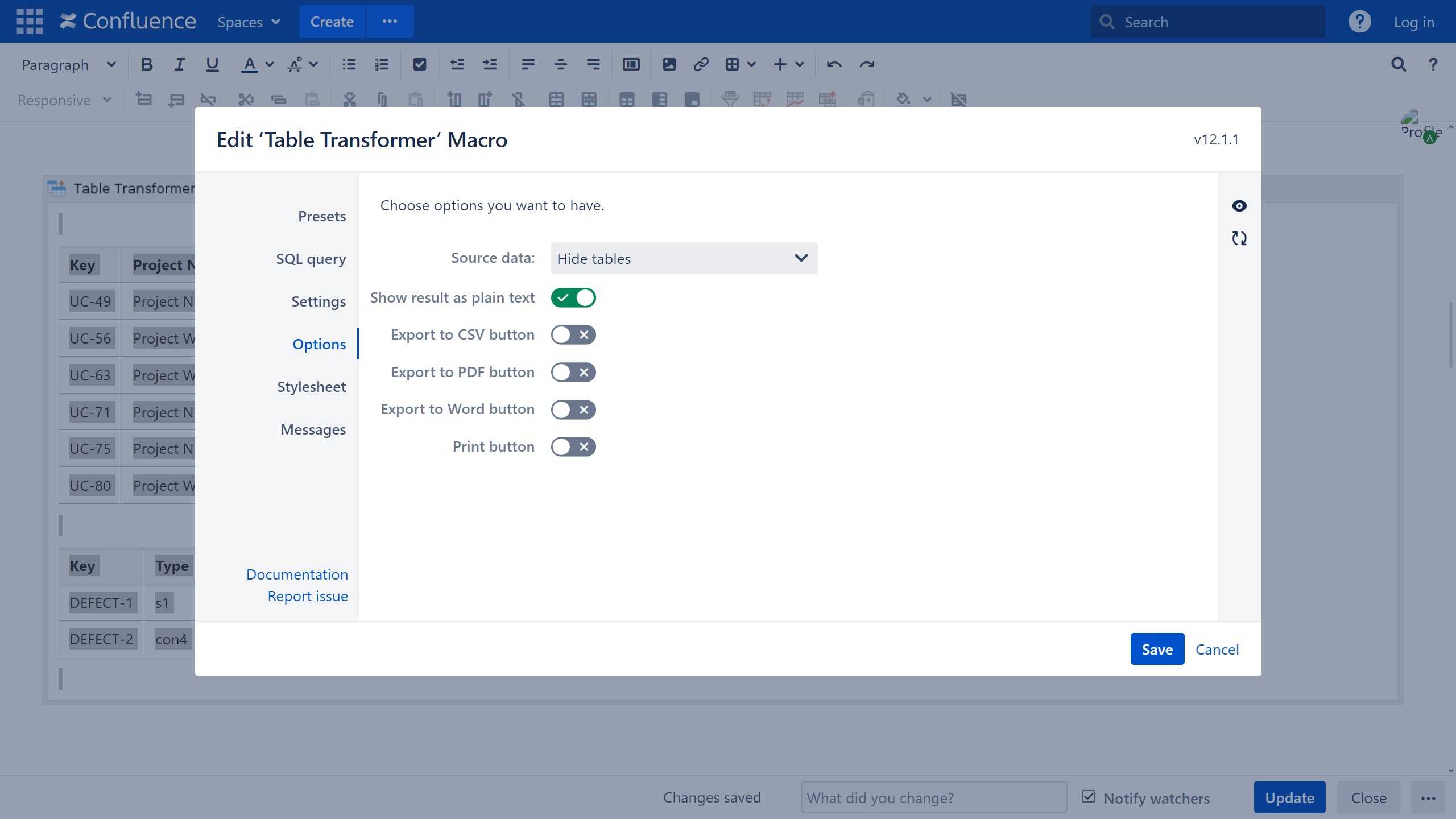 - Insert the Table Transformer macro and paste the tables or the macros outputting tables within the macro body.