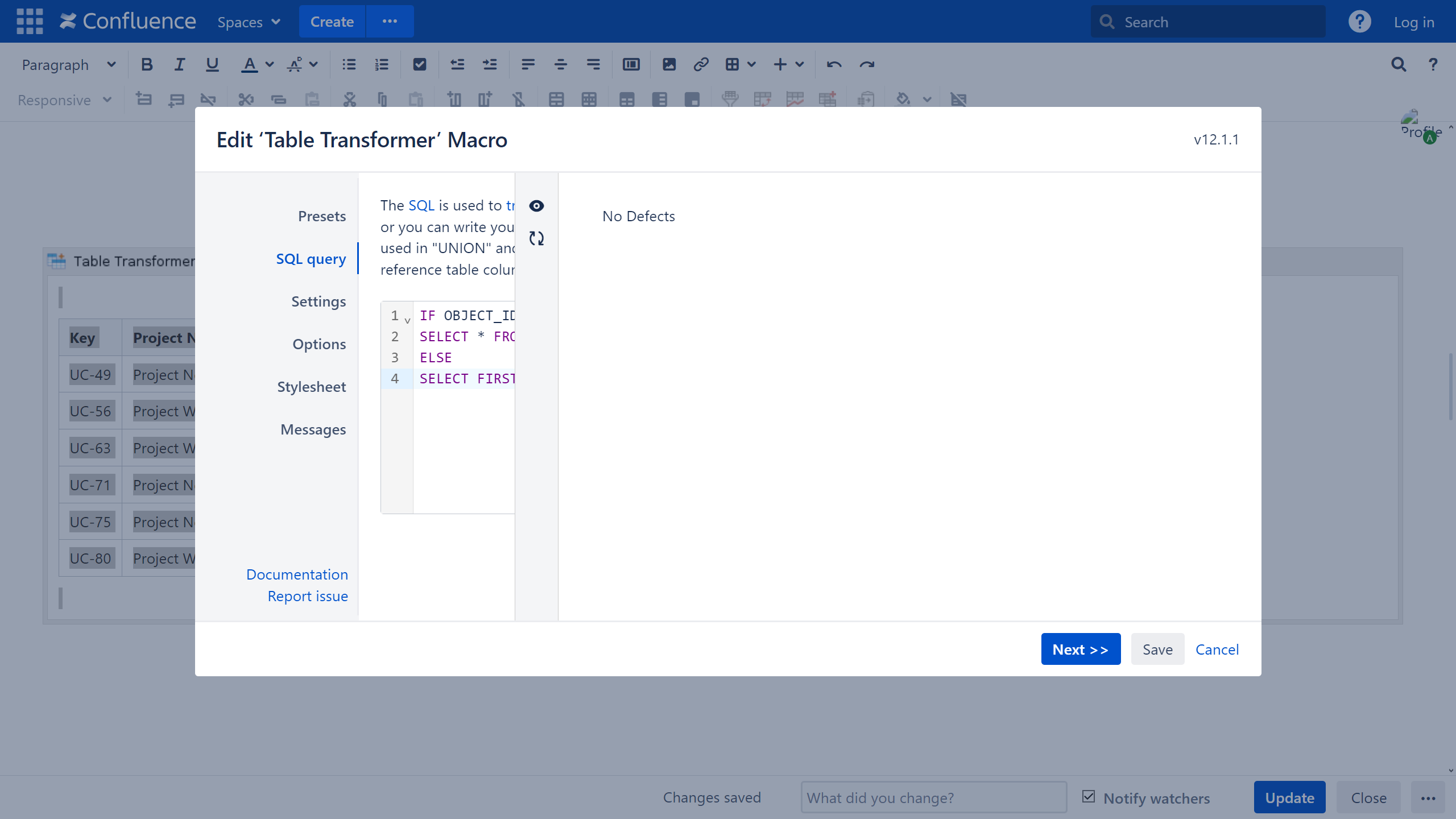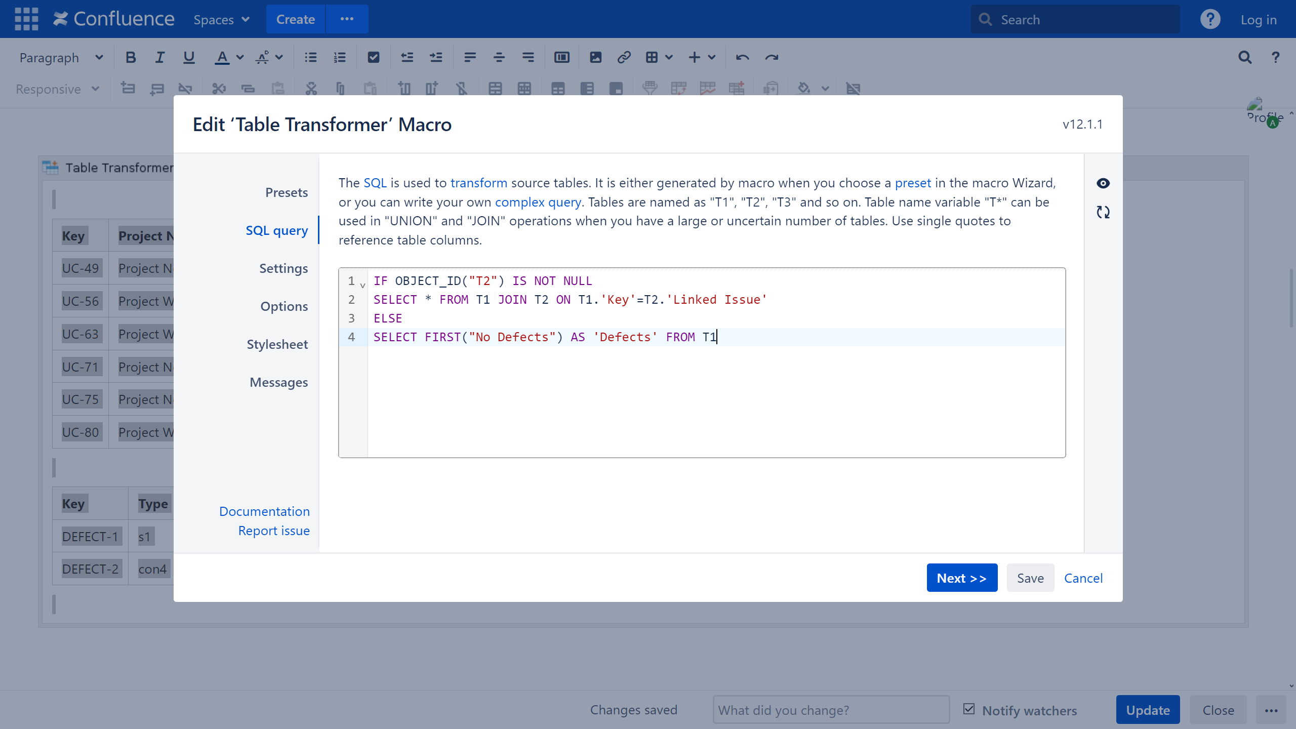 IF OBJECT_ID("T2") IS NOT NULL SELECT * FROM T1 JOIN T2 ON T1.'Key'=T2.'Linked Issue' ELSE SELECT FIRST("No Defects") AS 'Defects' FROM T1- Go to the Options tab.