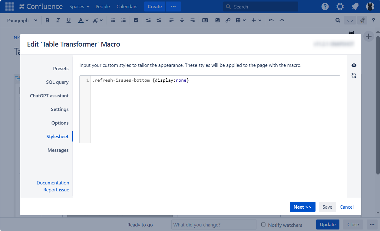 .refresh-issues-bottom {display:none;}Save the macro and the page.