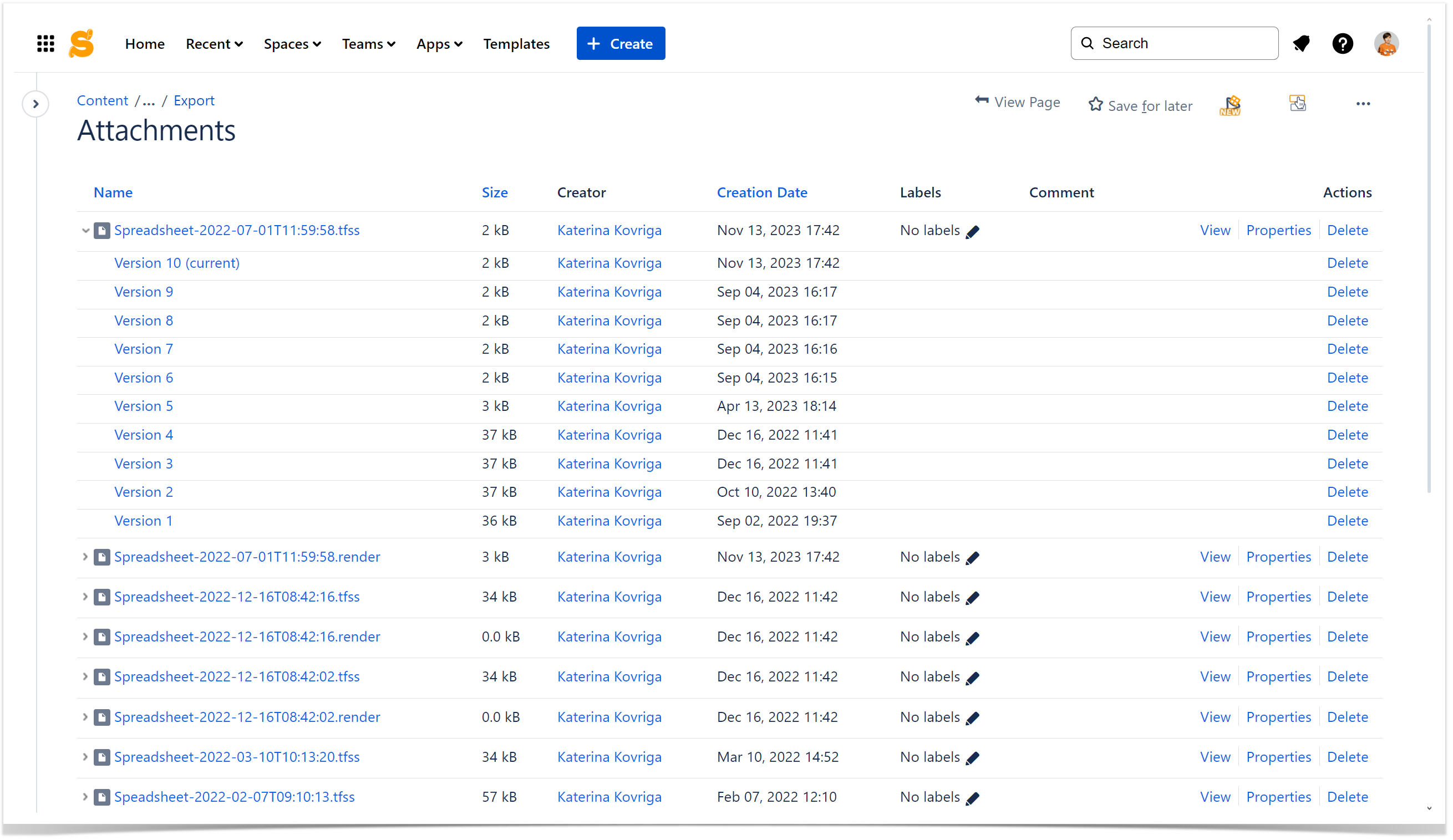 You can find all saved versions of the spreadsheets in the page's attachments. Expand the row with the .tfss file, download the required version, and import it into Table Spreadsheet.