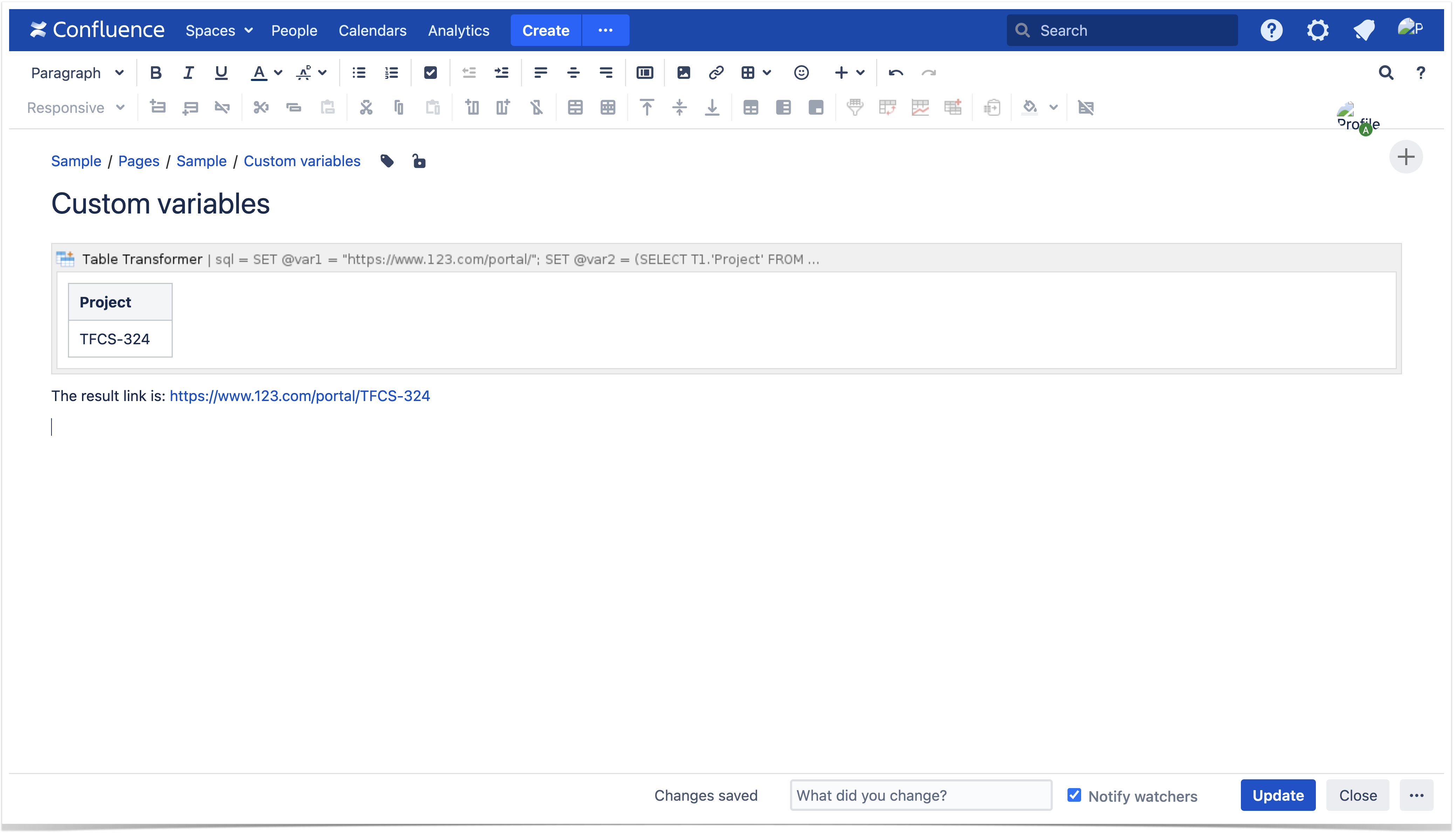 2. Insert the Table Transformer macro and paste the table or the macros outputting tables within the macro body.