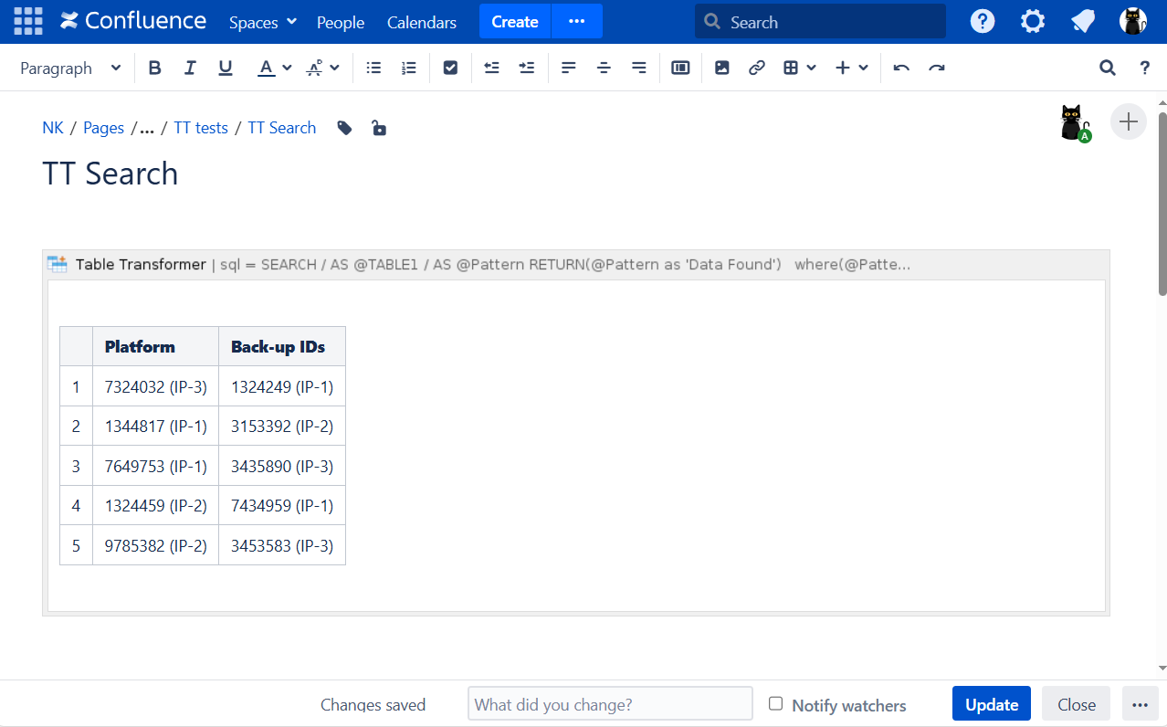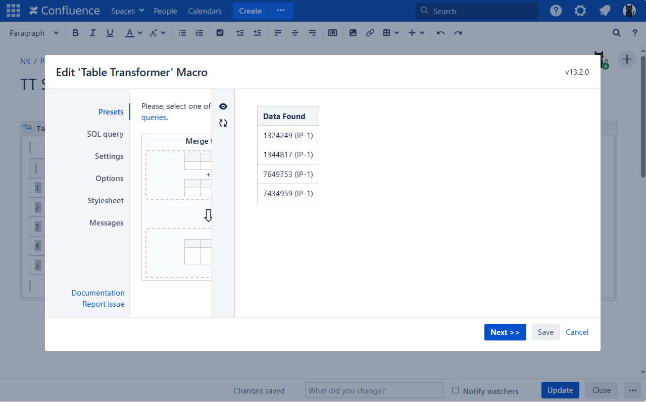 - Insert the Table Transformer macro and paste the table within the macro body.
