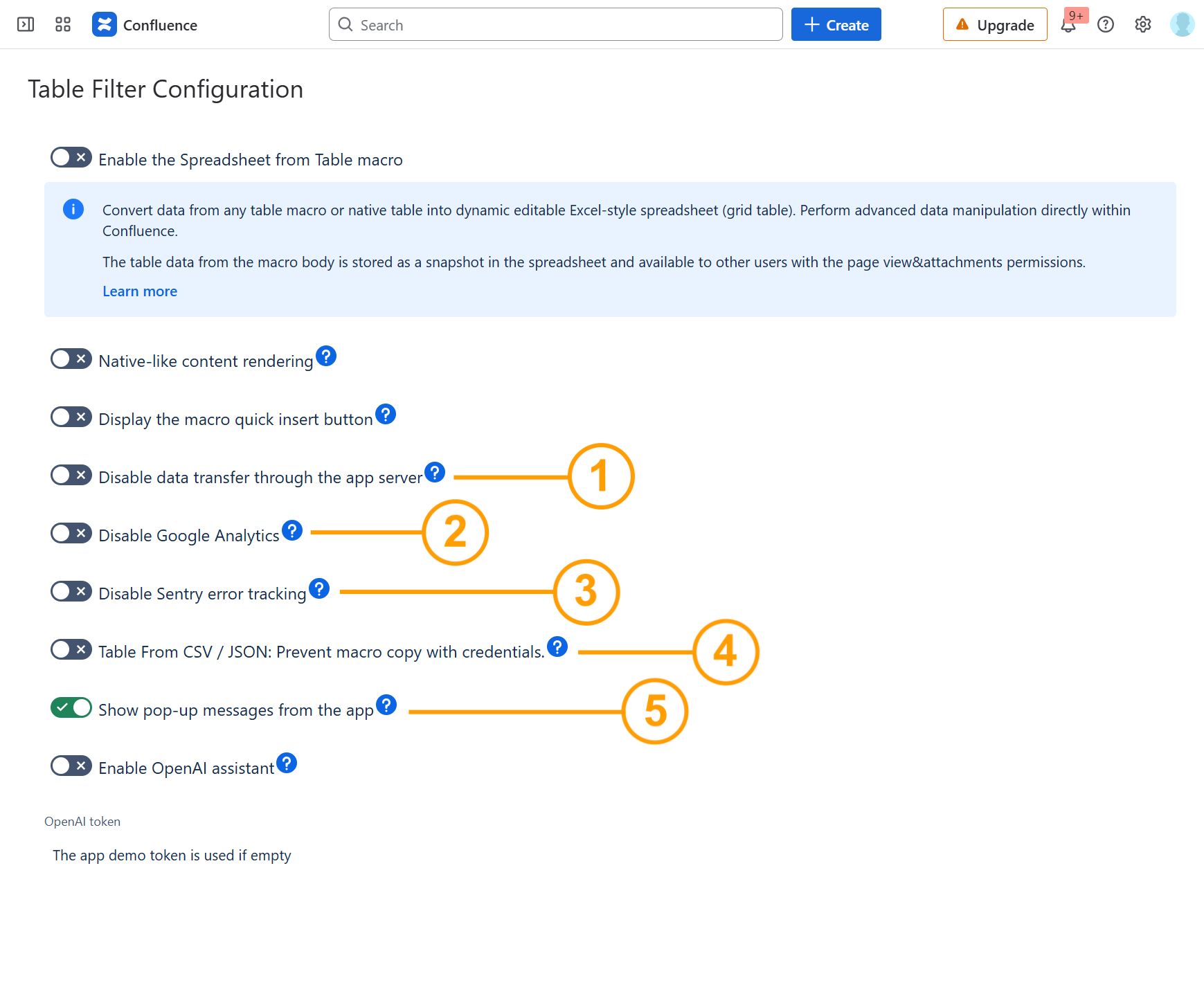 The OpenAI token from the app side is only available for  Confluence Cloud  with  $3 limit per instance . Further functionality usage requires OpenAI tokens purchase as per its official pricing .