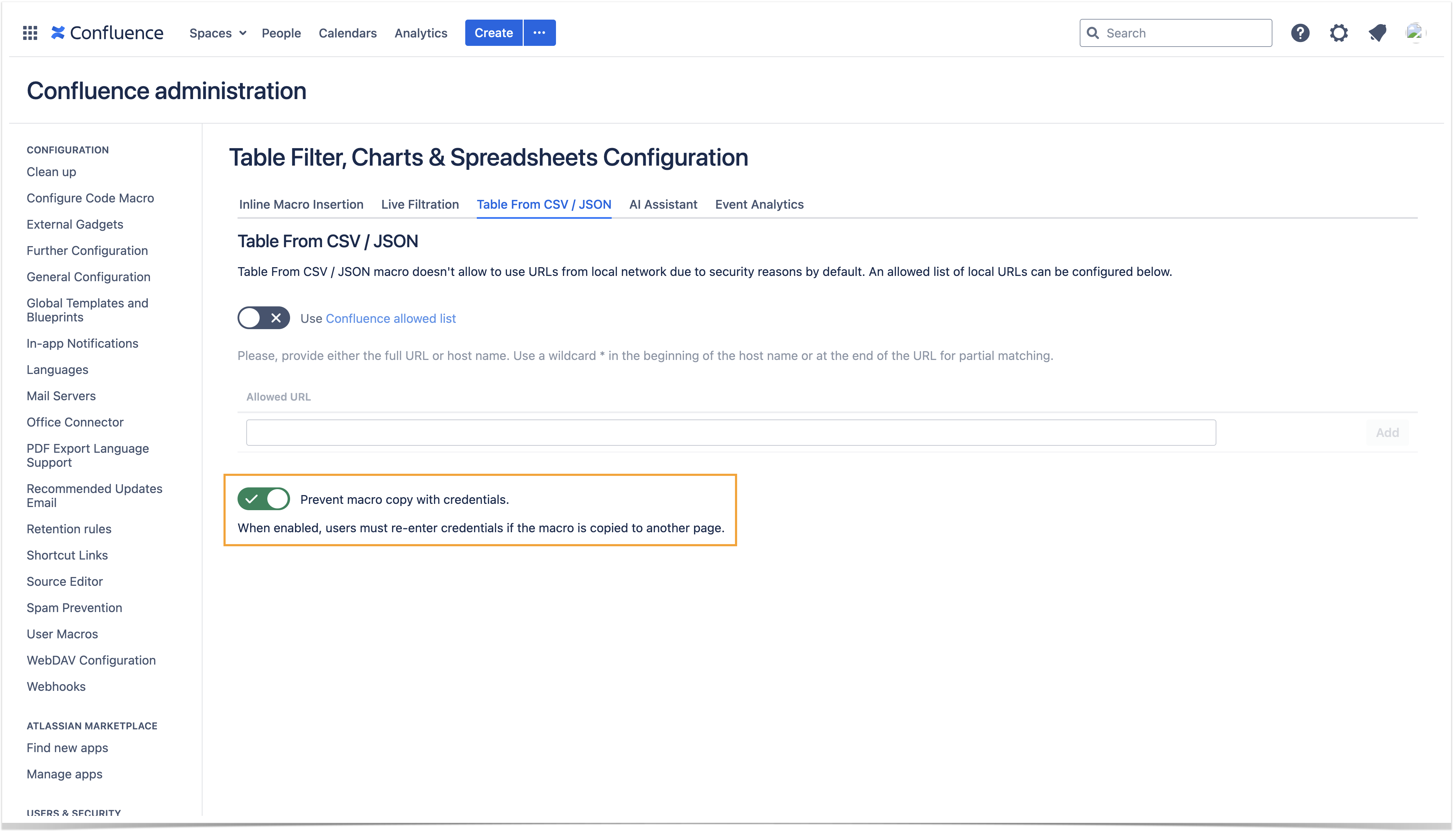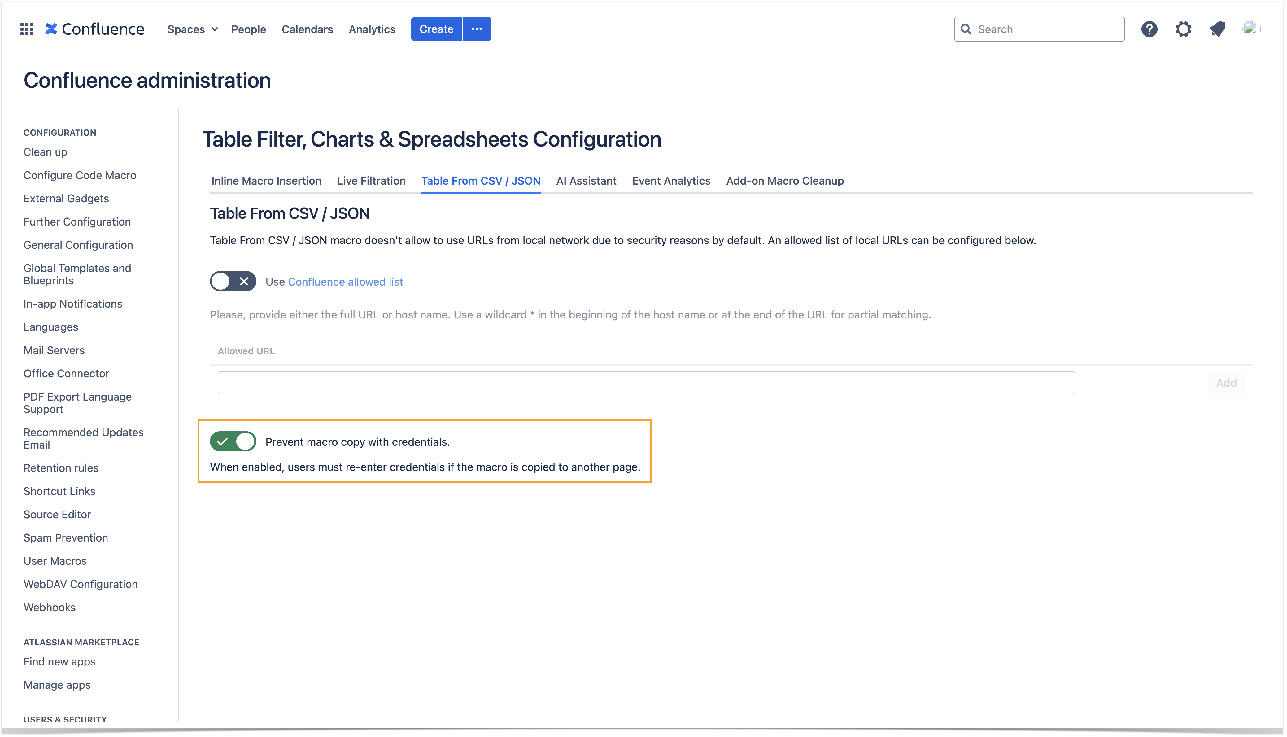 How to prevent credentials copying in Table from CSV, Table from JSON macros