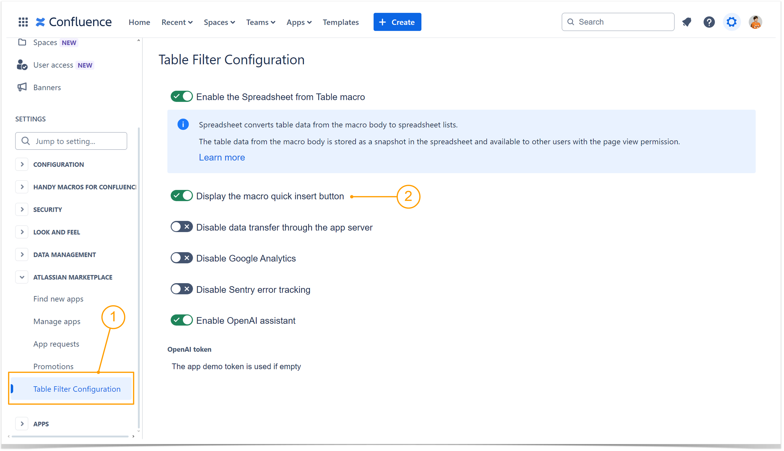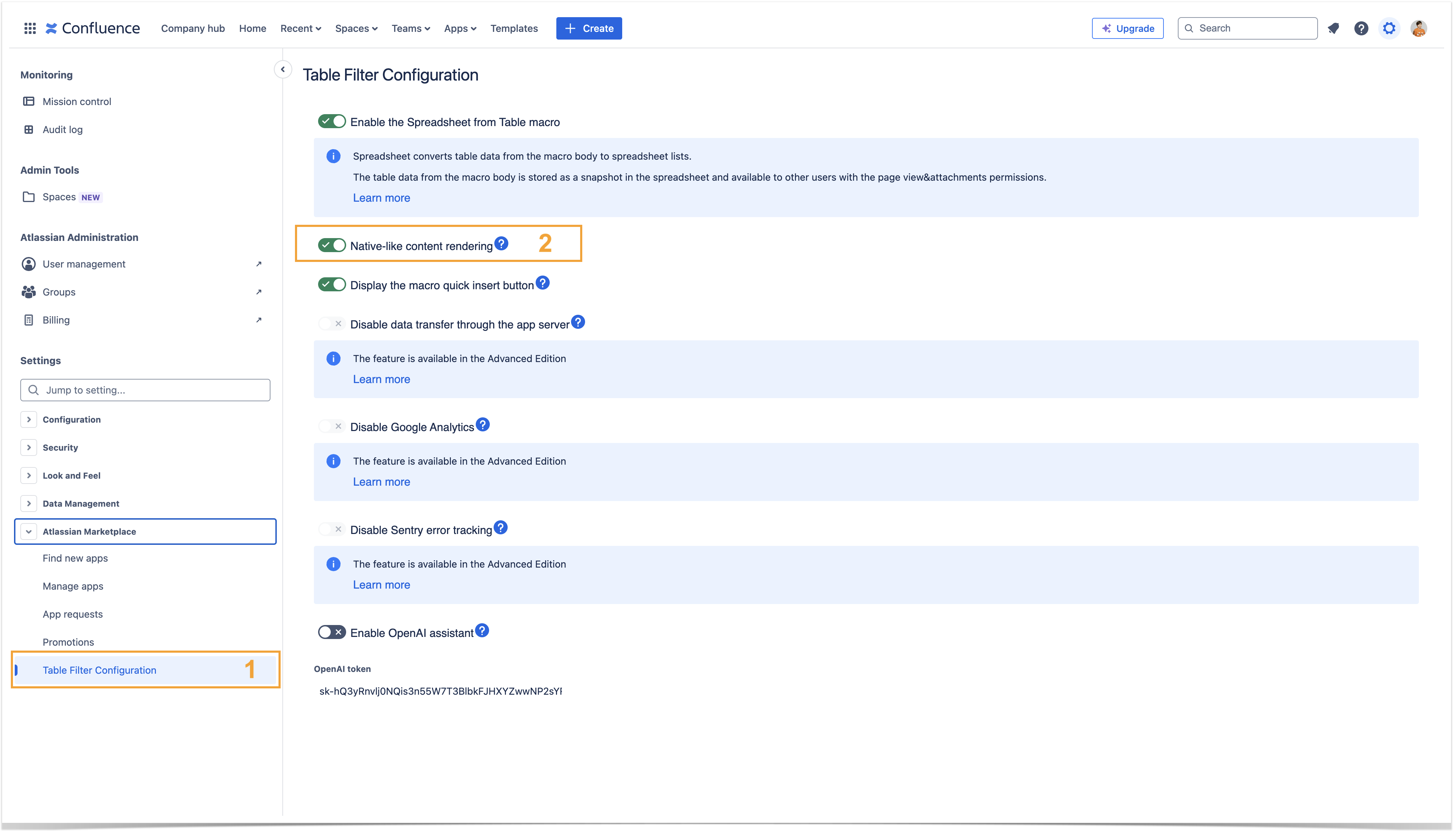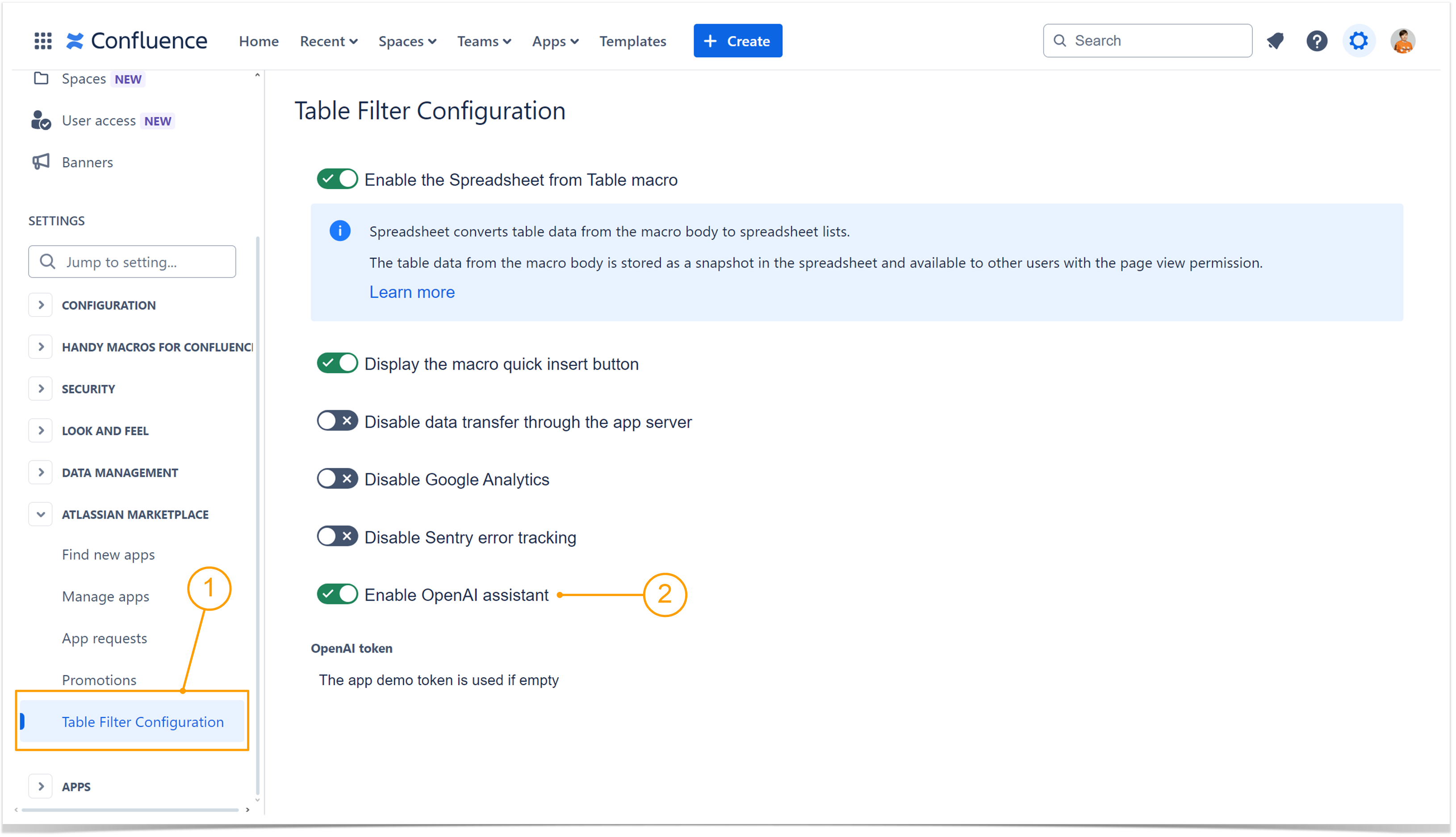 The OpenAI token from the app side is only available for Confluence Cloud with $3 limit per instance . Further functionality usage requires OpenAI tokens purchase as per its official pricing .