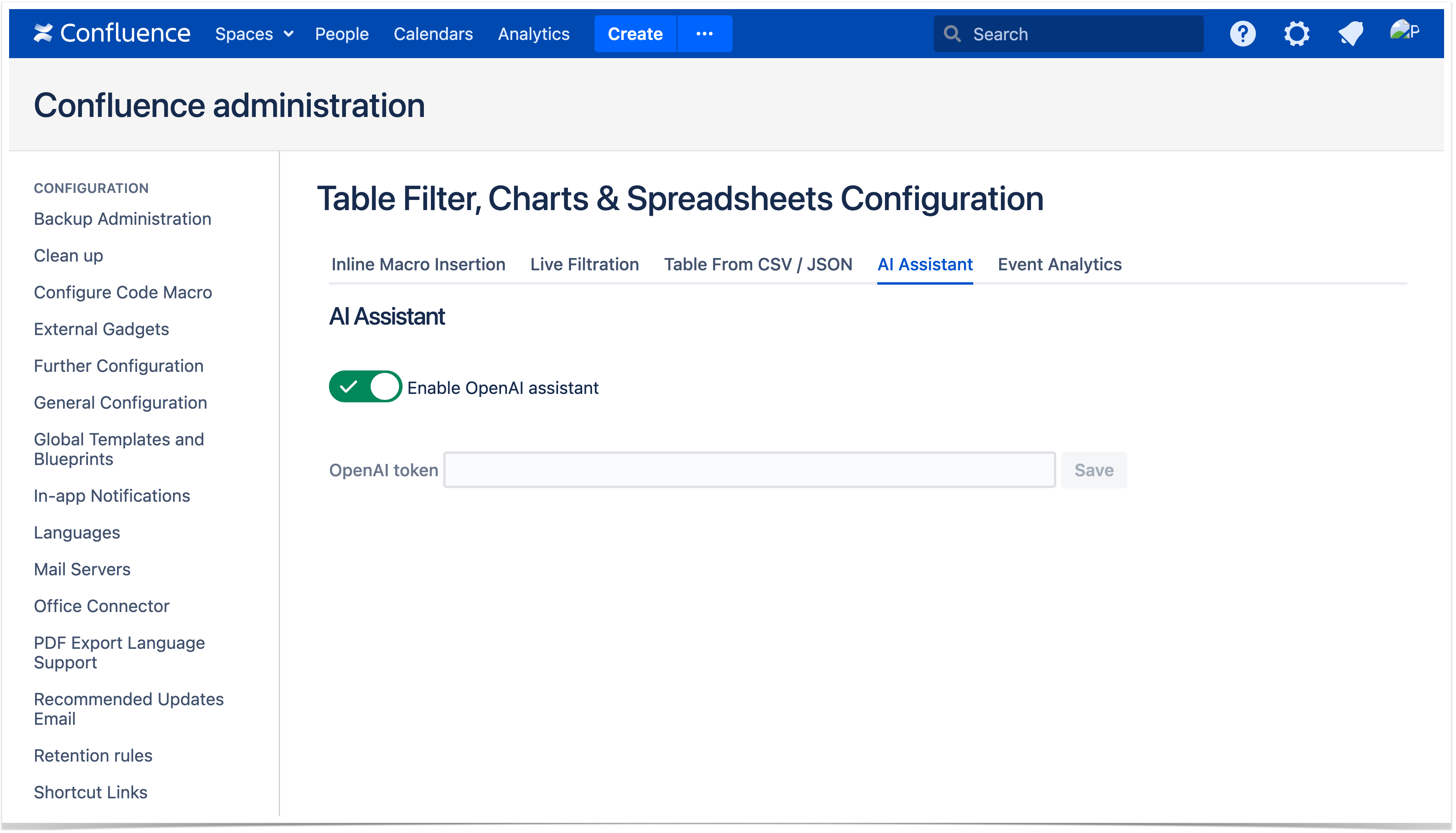 - Toggle on or off the Enable OpenAI assistant feature