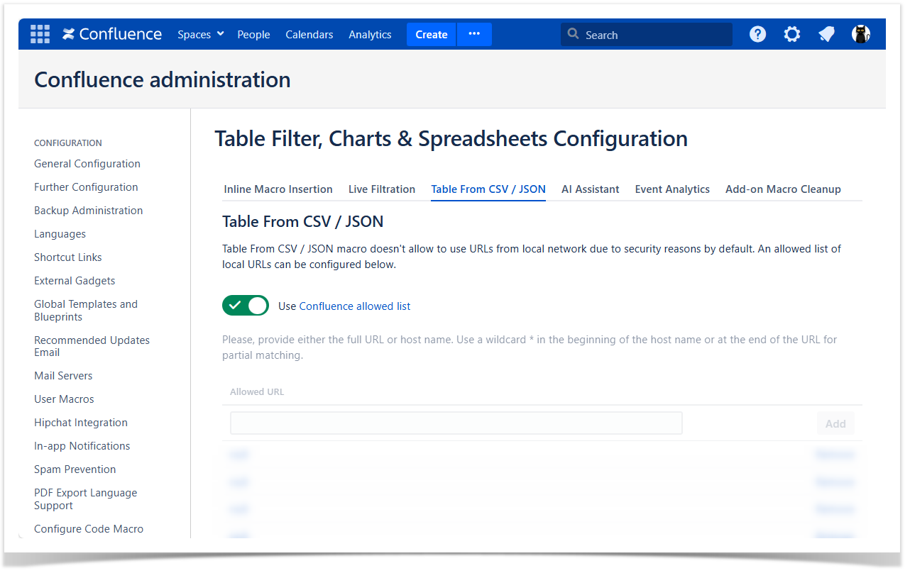 - Add URLs from the local network that you'd like to allow requesting data from:
