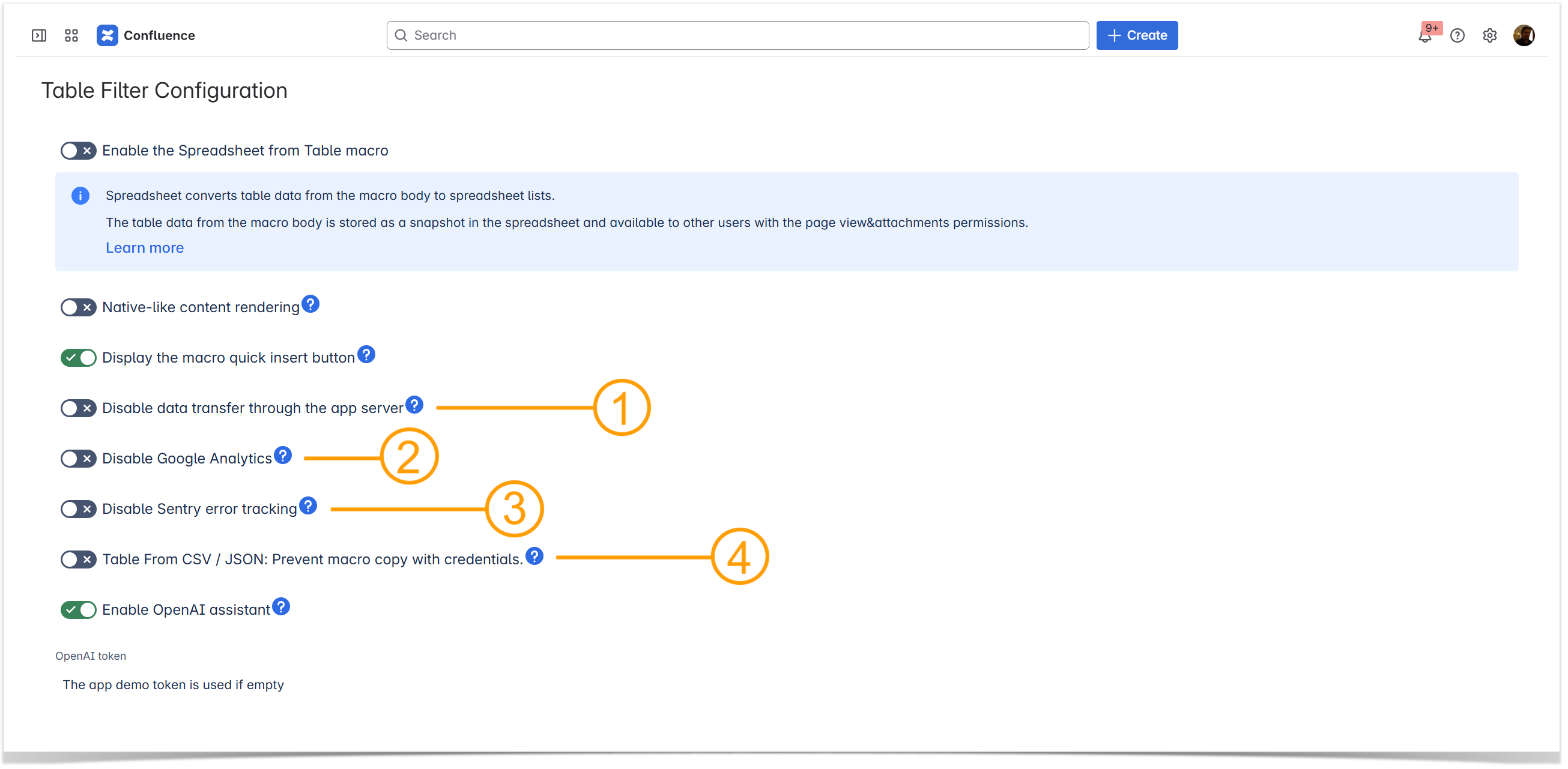 The OpenAI assistant, based on the gpt-4o model, will be enabled/disabled for AI Table , Table Spreadsheet and Table Transformer macros.
